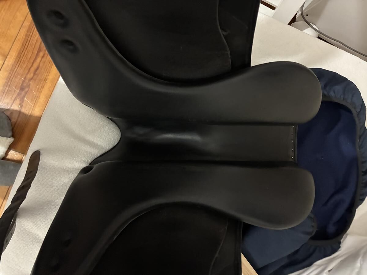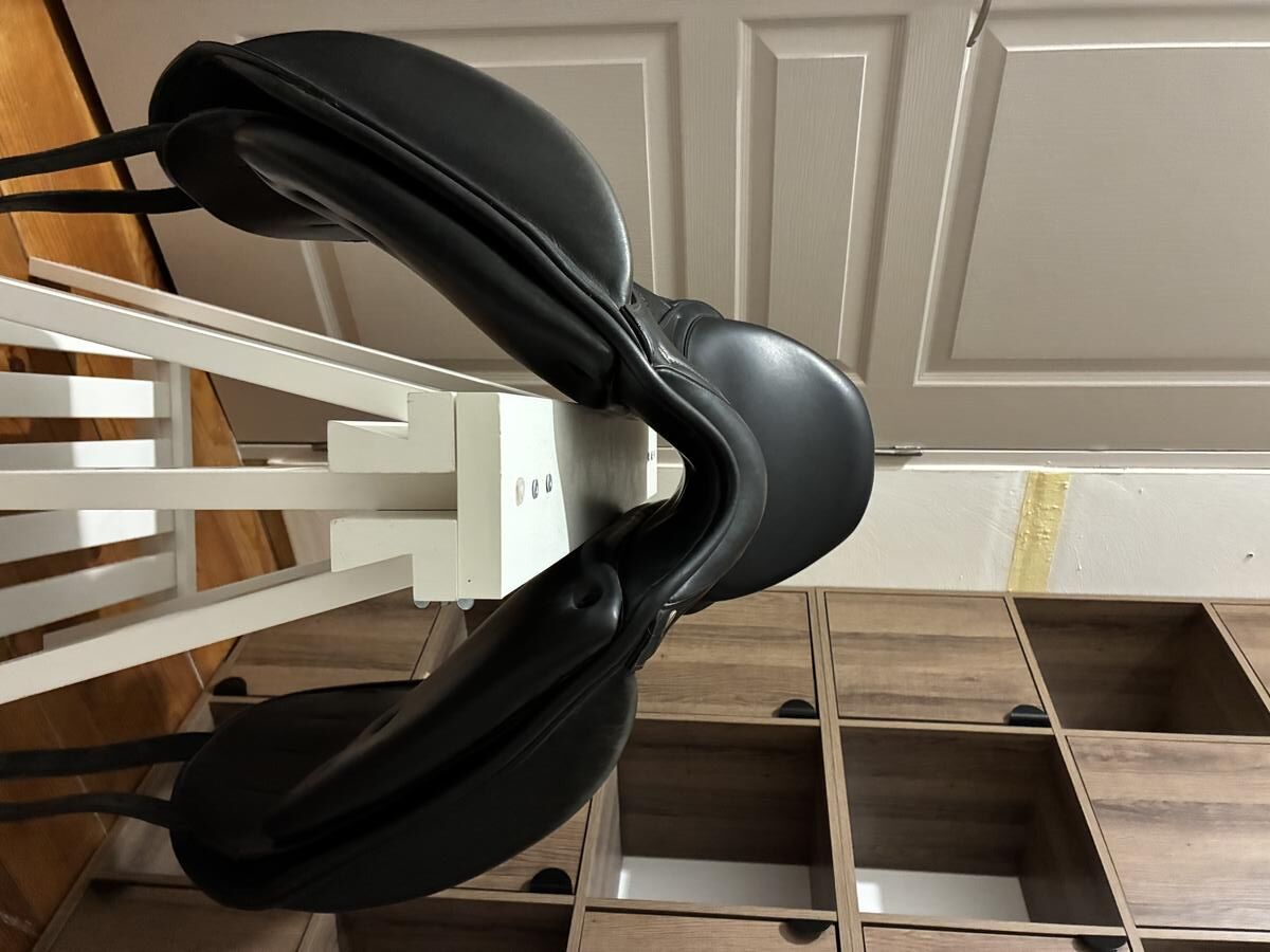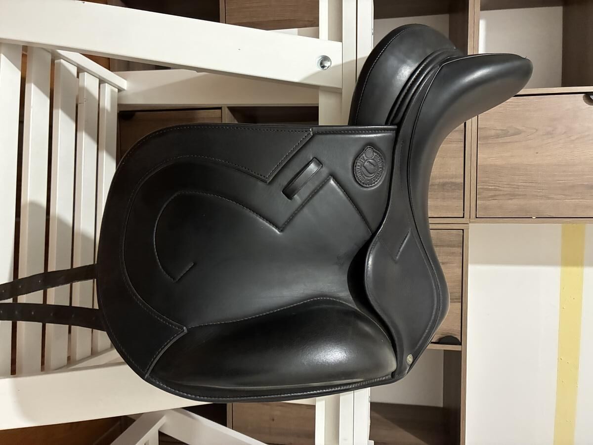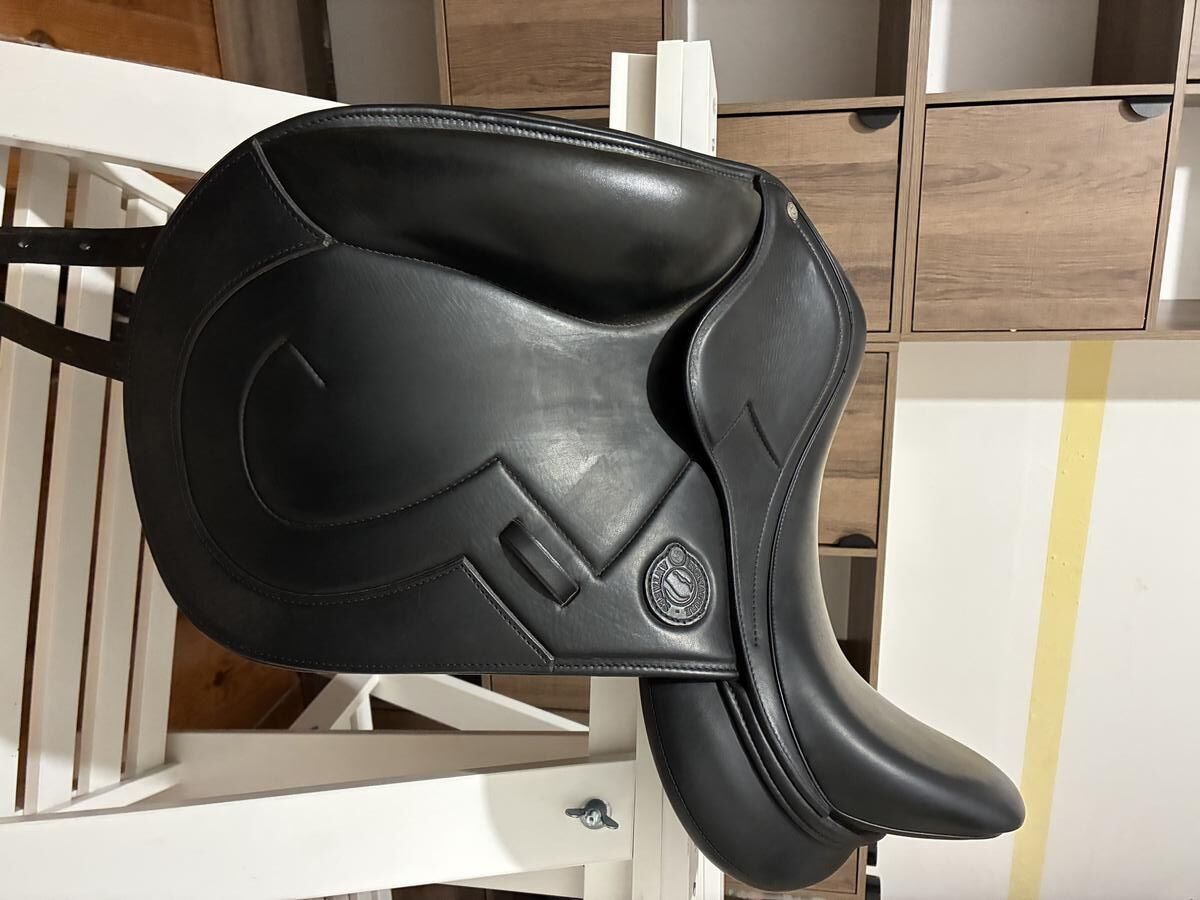 Selle de dressage en cuir noir de la marque Antares, taille 17, quartier taille 1