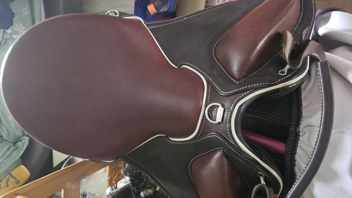 Selle Gaston Mercier Margueride 17,5 pouce. Comme neuve. Ferder,étriers, deux tapis Gaston Mercier. Sangle anatomique. Protège Selle.