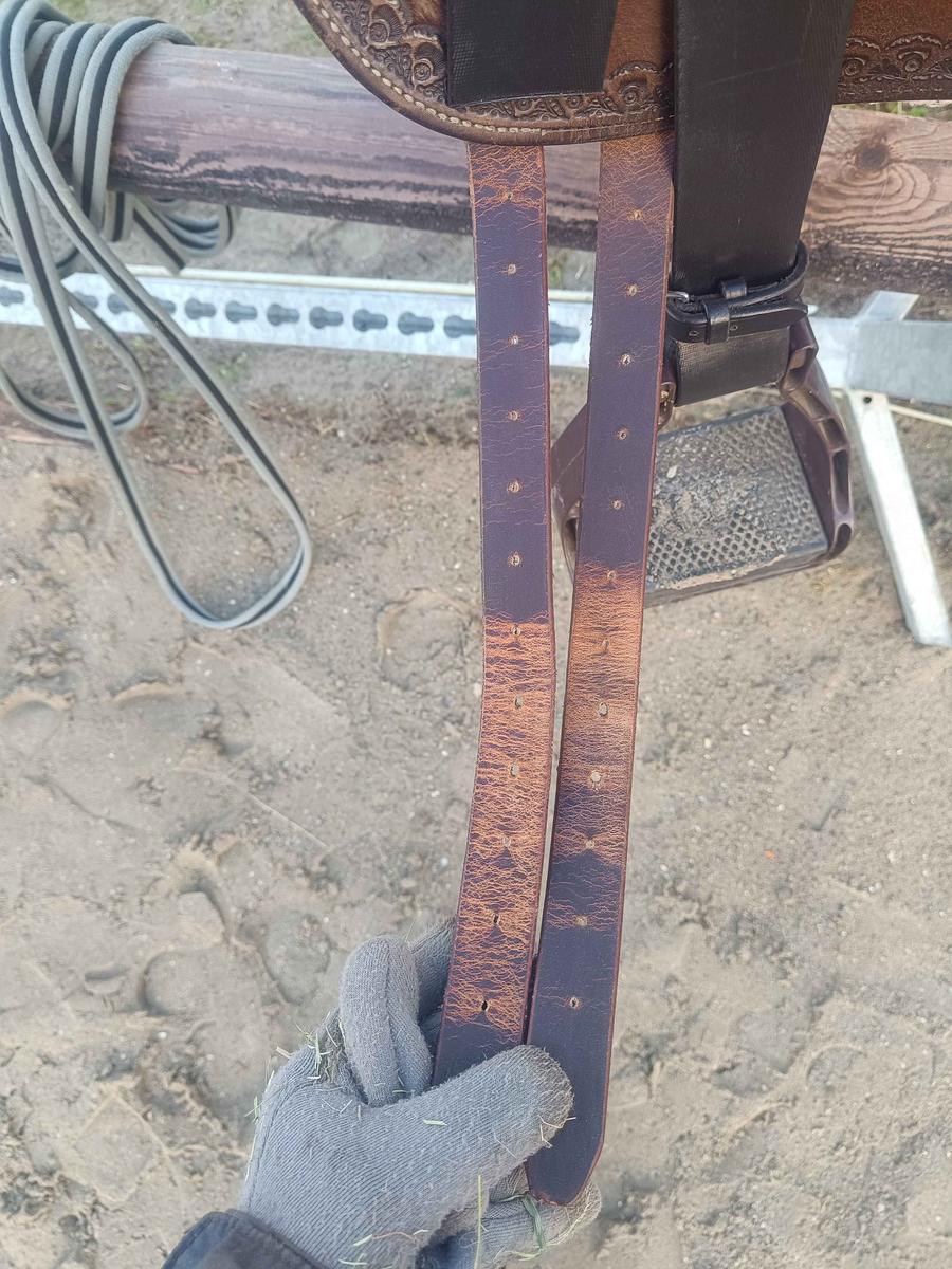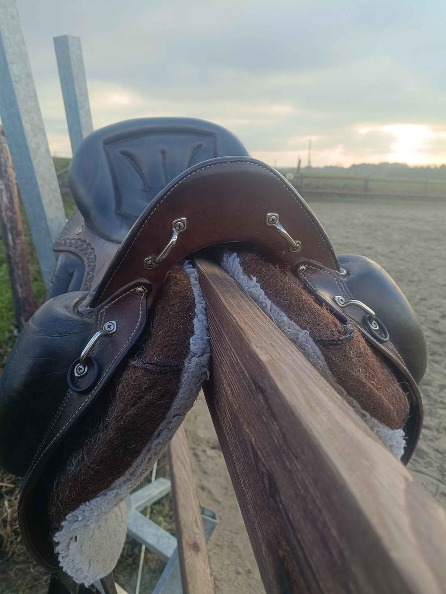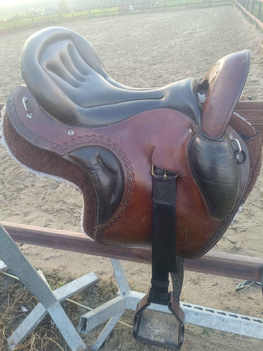 selle en cuir, arçon en bois