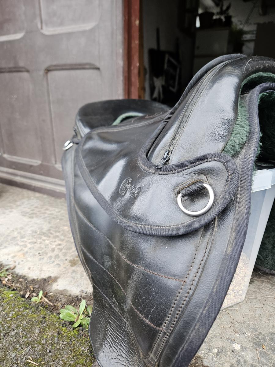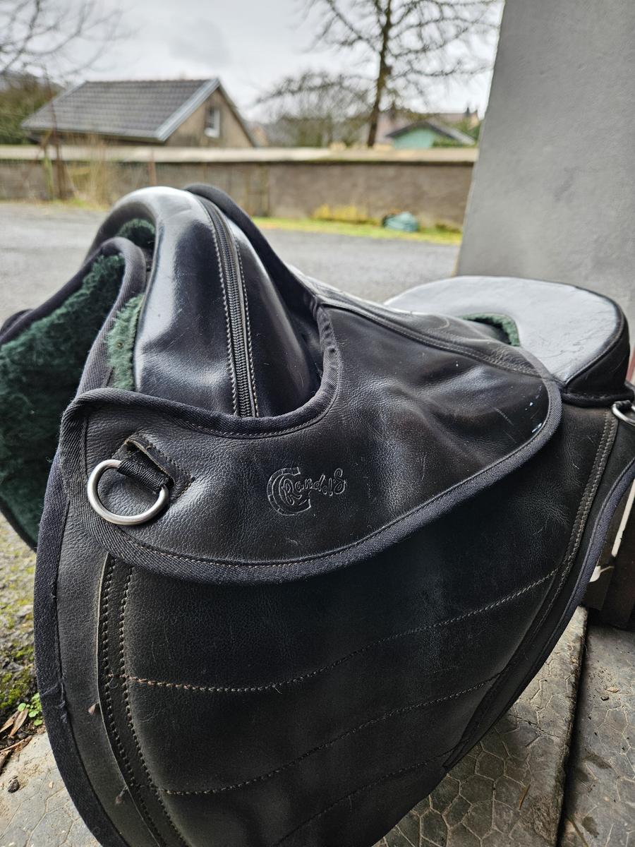 Selle sans arçon noir, bon état confortable.