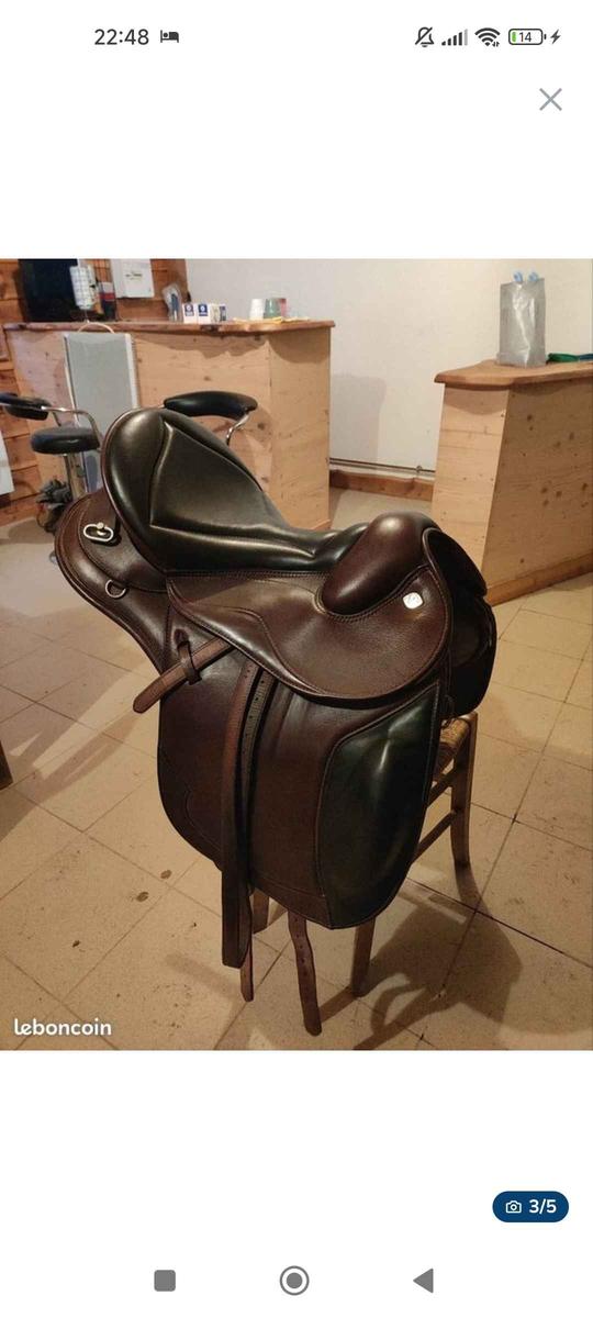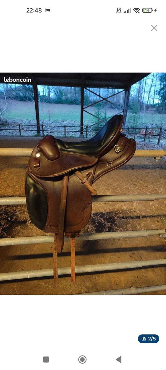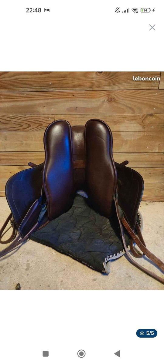 Je vends cette selle de prestige Athena, idéale pour de la rando et du dressage. - Taille du siège : 17" - arcade : 34 - quartier: taille standard mais pas grand - double taquet pour optimiser le positionnement de la jambe. - siège : hyper confort - sanglage en V pour plus de confort (peut être vendue avec une sangle en cuir) - un léger défaut sur une des bouckerie de bagages qui n'engendre en rien la fonction de la selle. Selle en très bon état, vendue avec étrivières et housse de...
