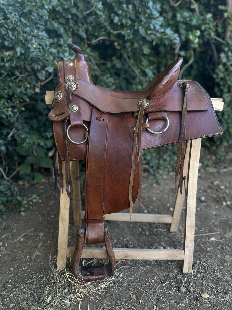 Selle âgée très peu servie et bien entretenue pour chevaux fins et courts (poneys fins)