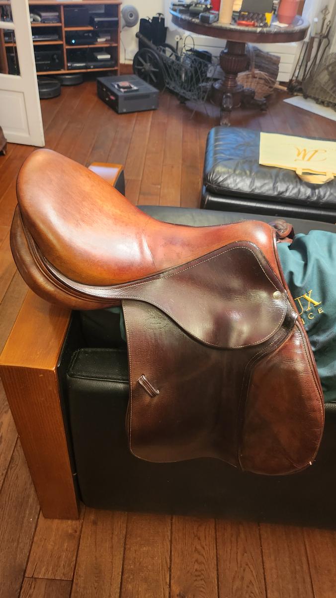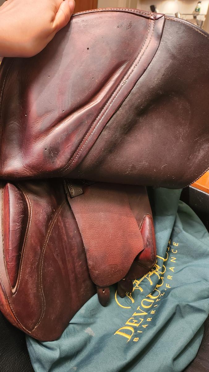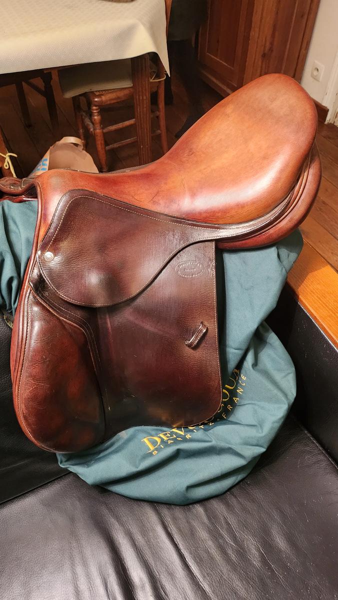 Selle d'occasion Devoucoux Biarritz S - 17,5" + housse Devoucoux.