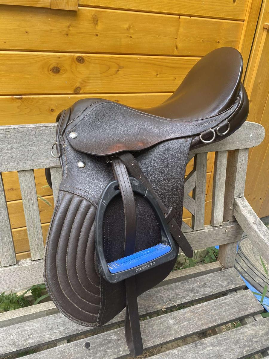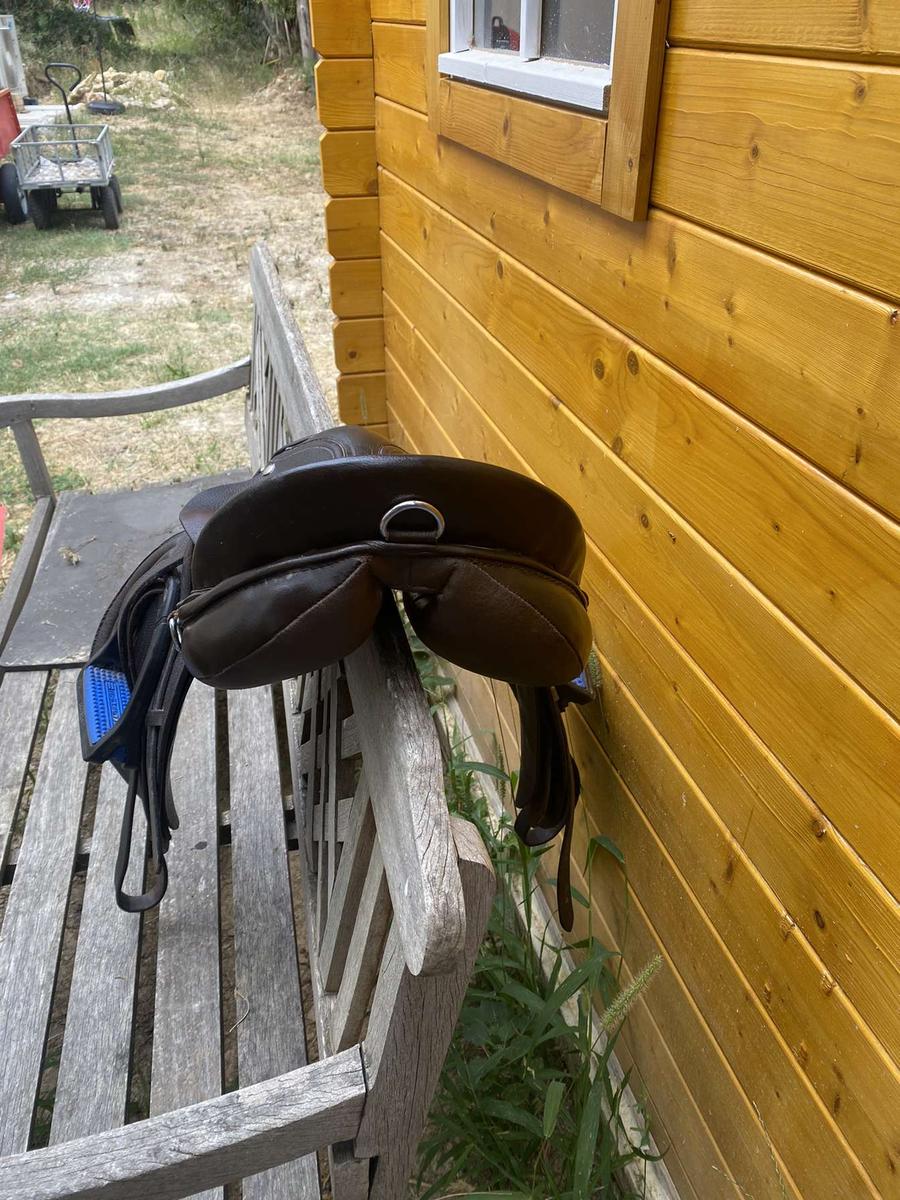 J’offre avec la selle les semelles pour étriers en orange et vert !