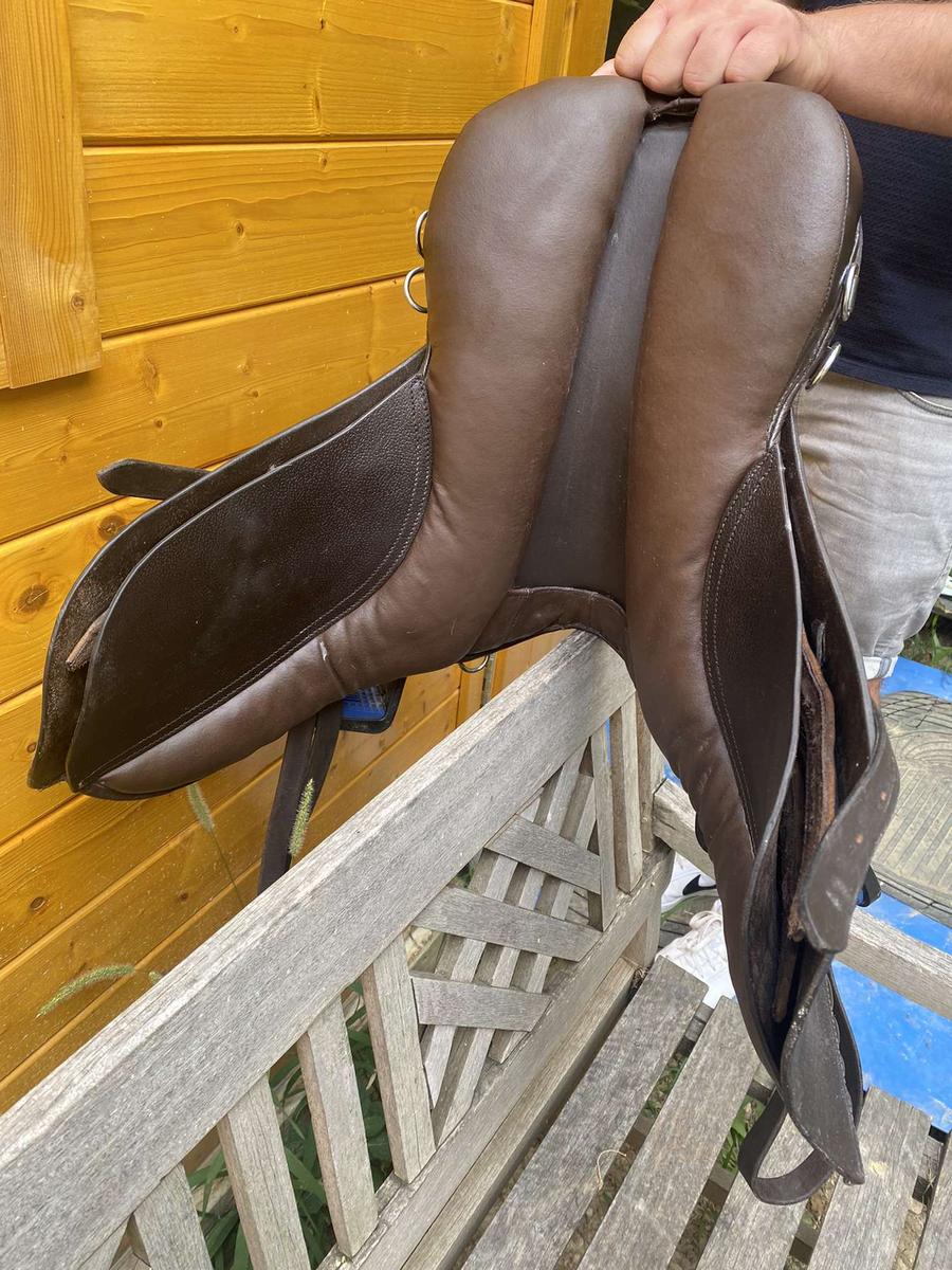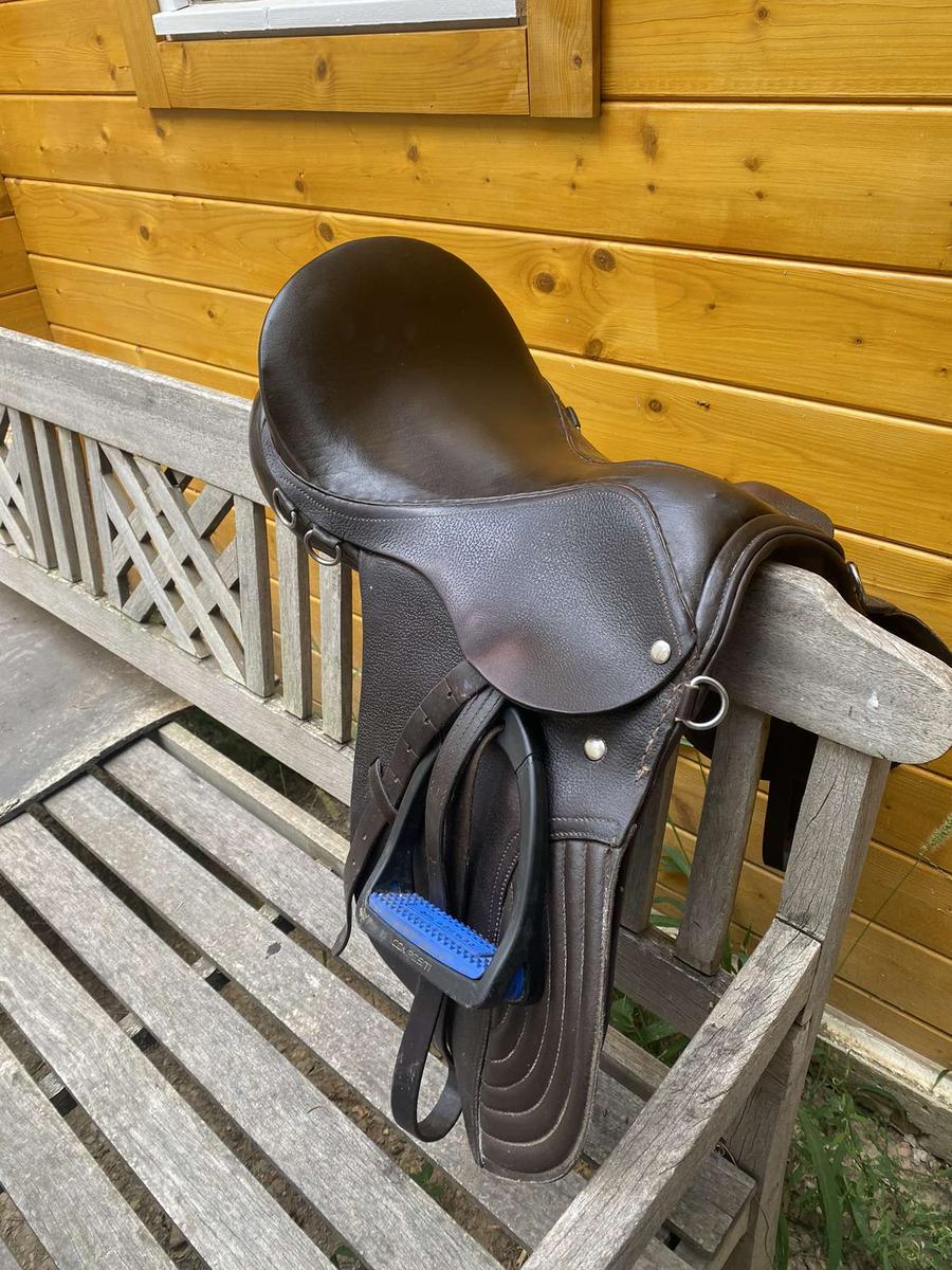 J’offre avec la selle les semelles pour étriers en orange et vert !
