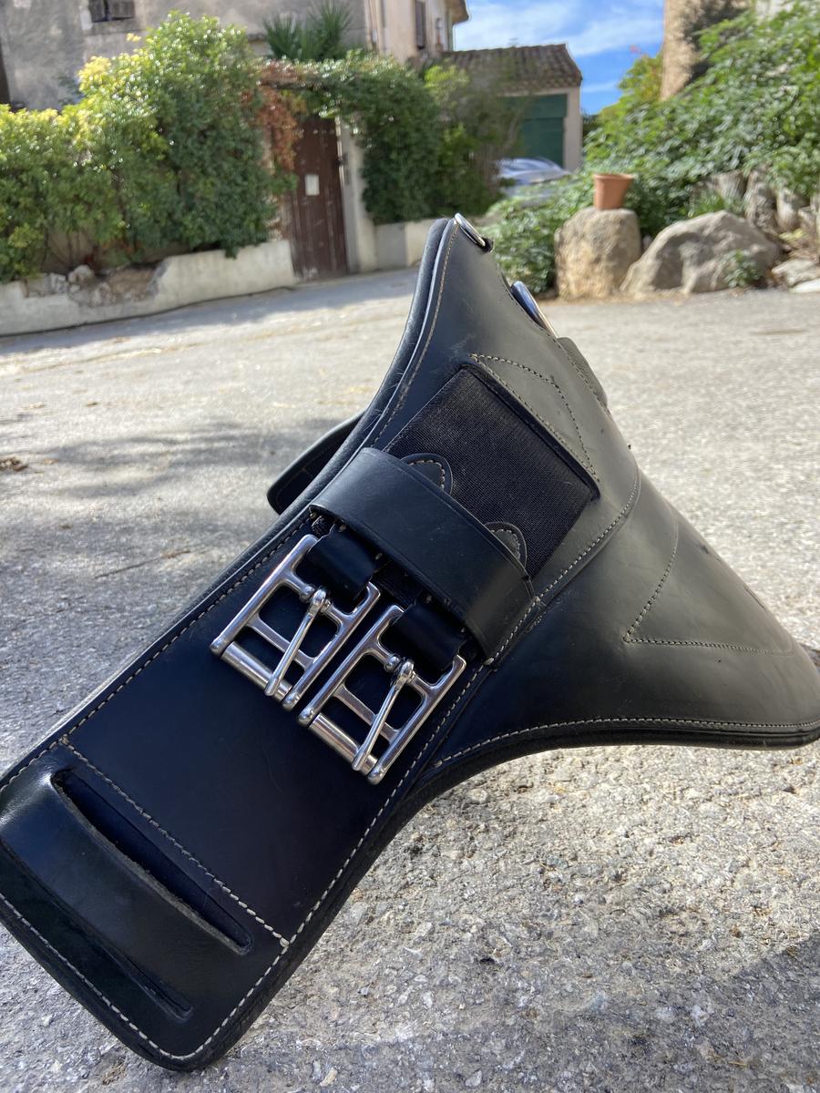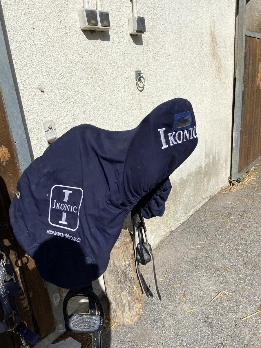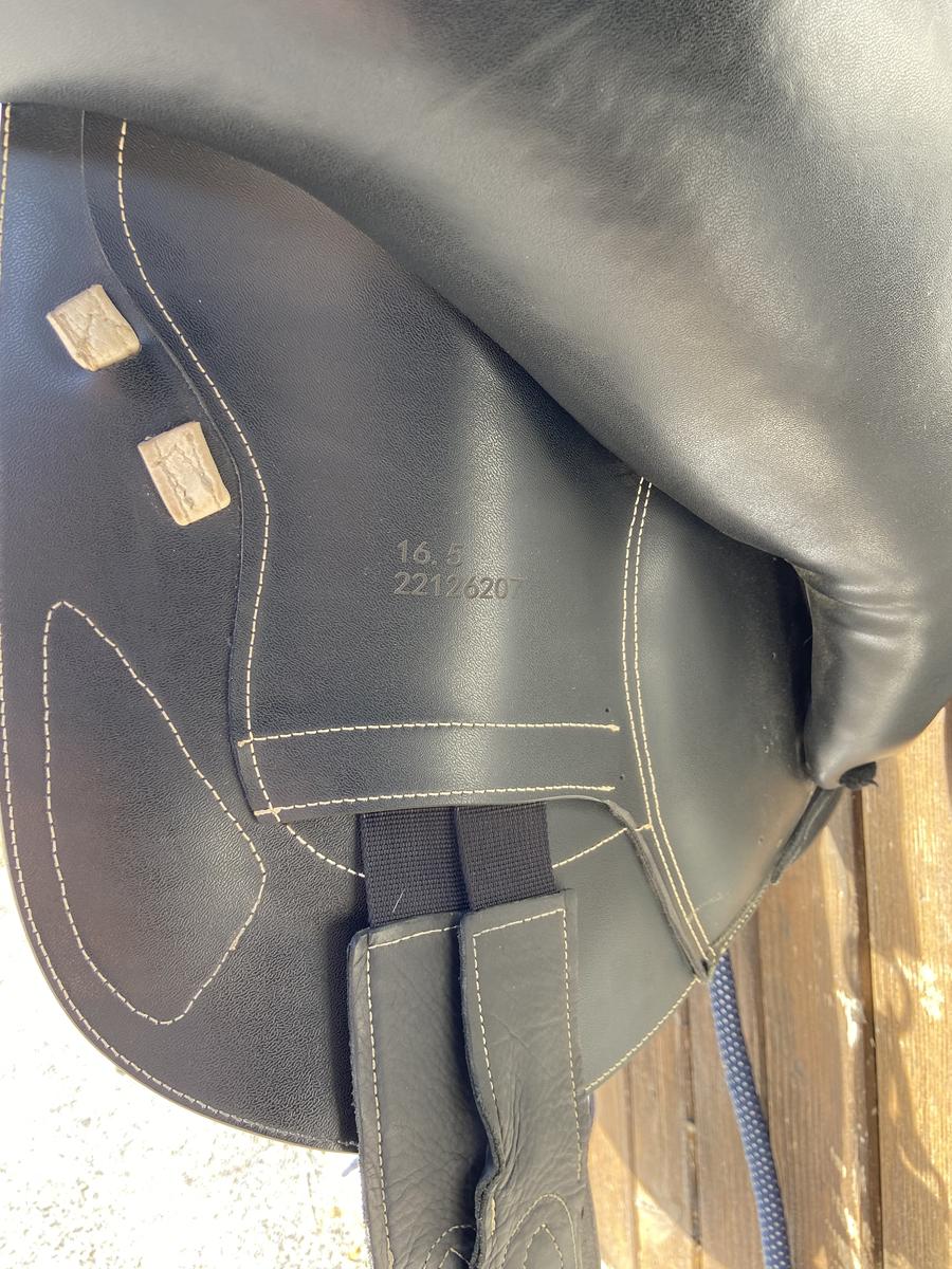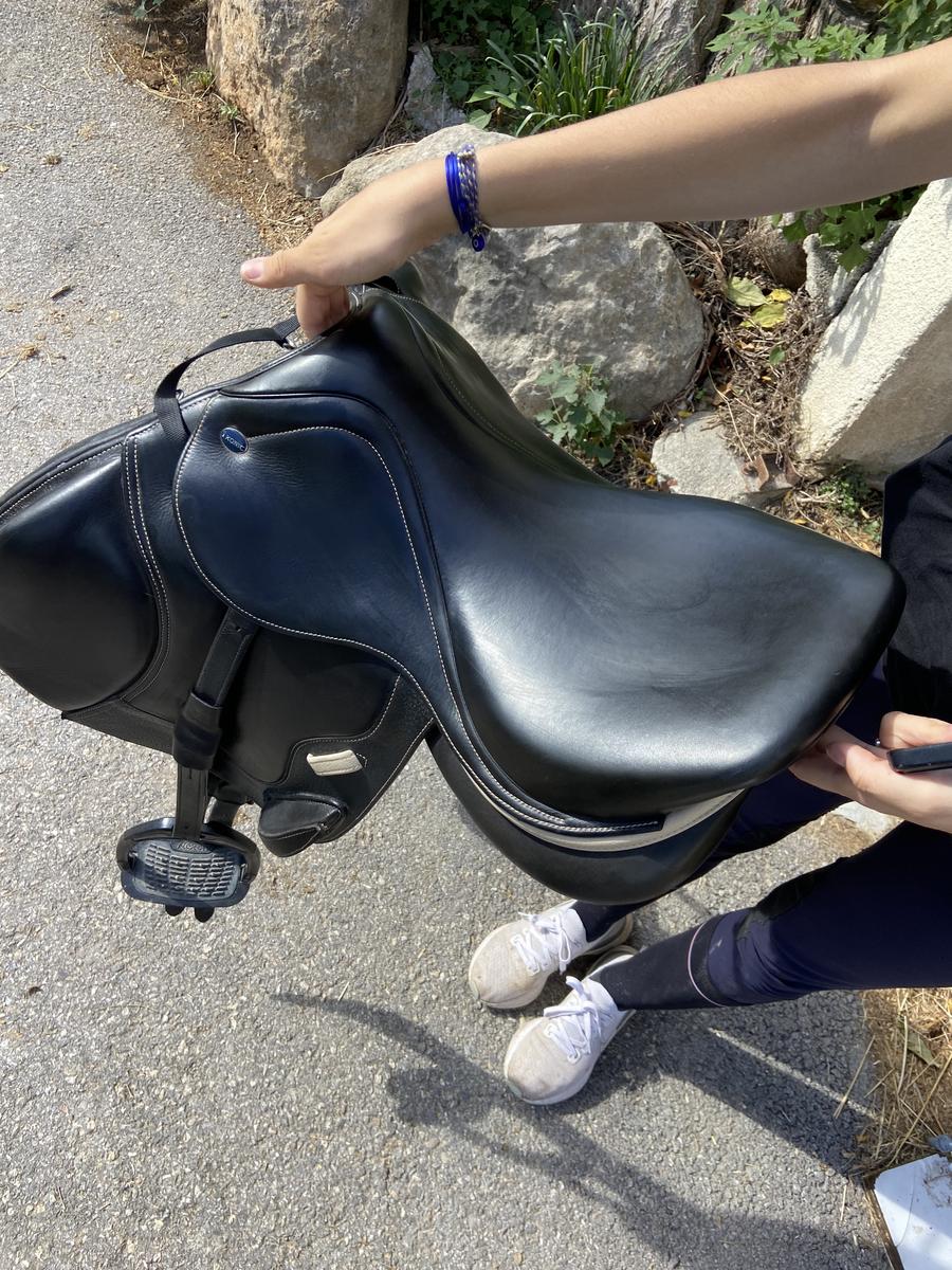 Une selle en très bon état. Elle est vendu toute équipée avec bavette étrivière et housse de selle. Je l’ai acheté en 2022 convient à tout type de cheval. Taille du siège de 16,5.
