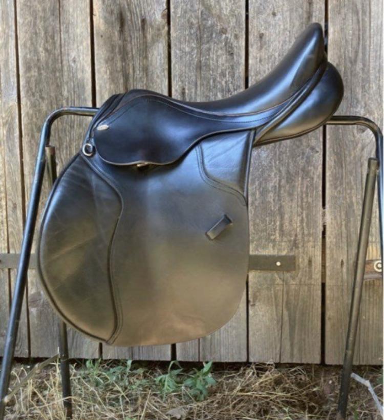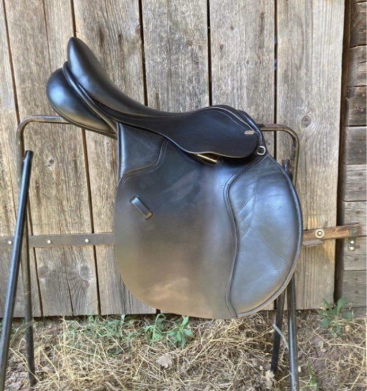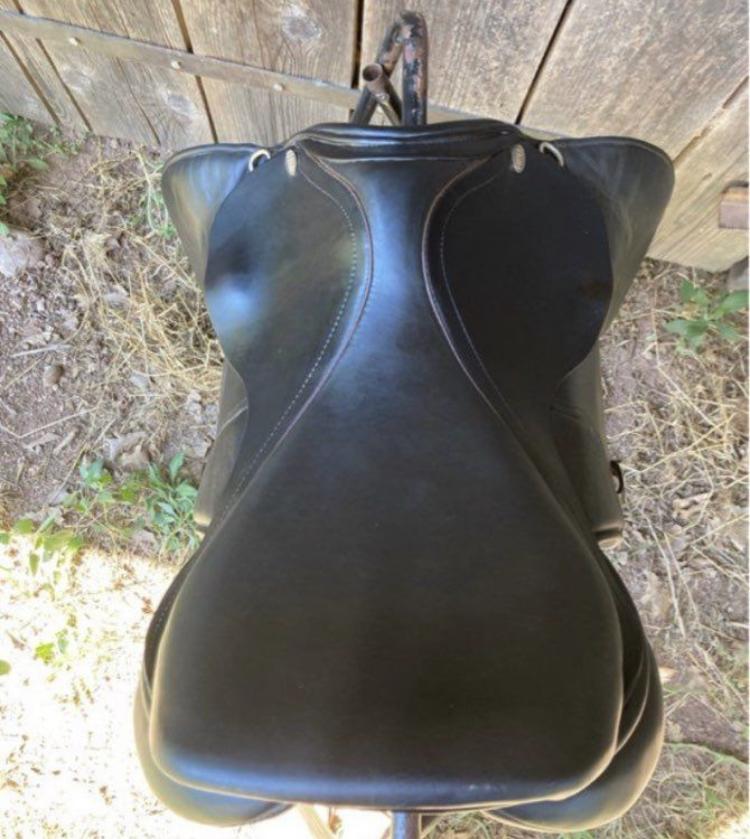 Selle mixte HKM noire taille 17 arcade plutôt étroite.