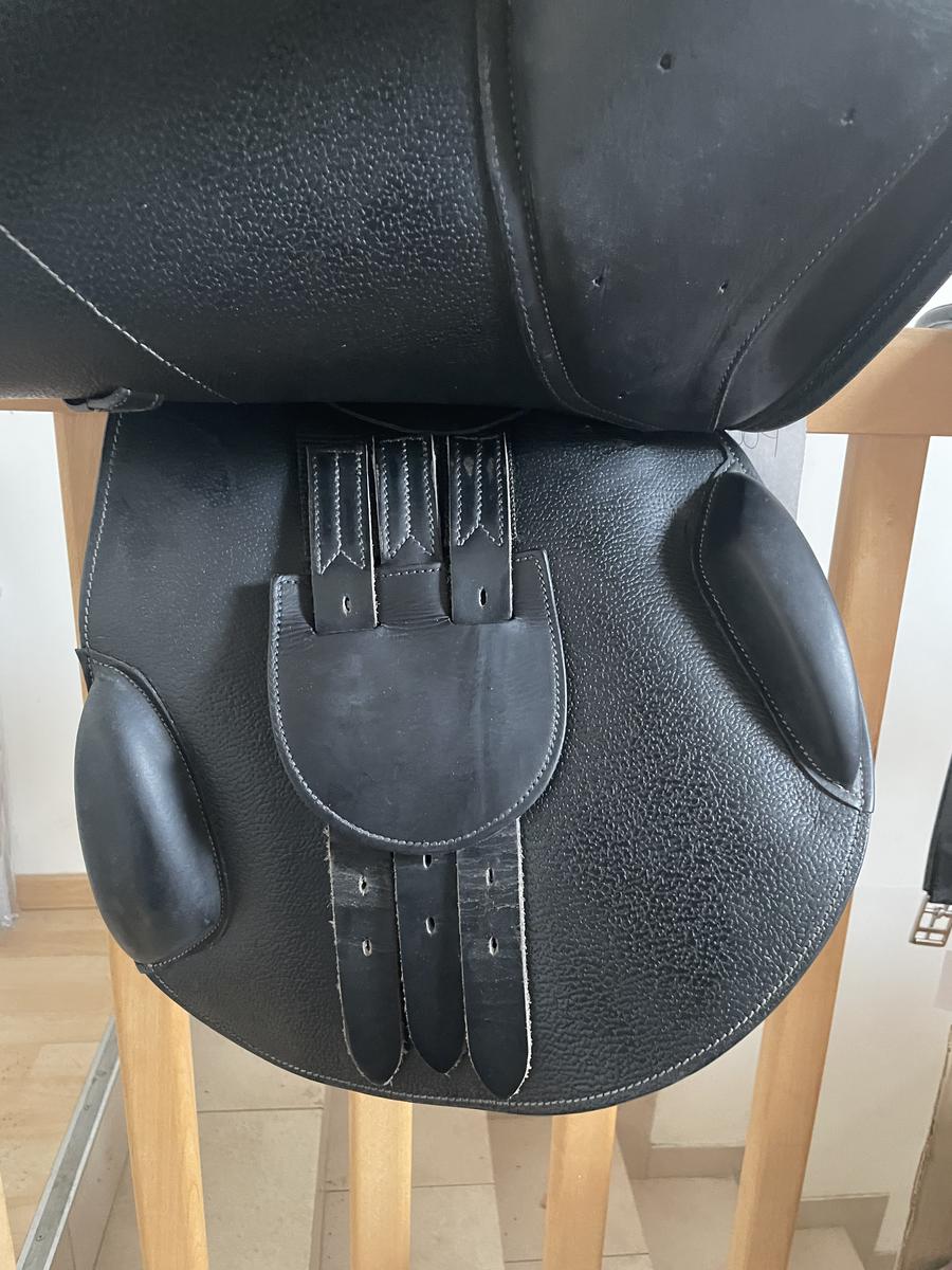 Selle cavalhorse en cuir noir en taille 17,5. C’est une selle mixte donc qui peut très bien convenir pour du dressage ou du saut. Elle possède 2 taquets sur chaque côté de la selle. Elle sera vendu avec sa housse et c’est 2 arcades interchangeables acheter séparément de la selle. Un en taille M et un autre en taille M/S, la selle quant à elle possède l’arcade S.