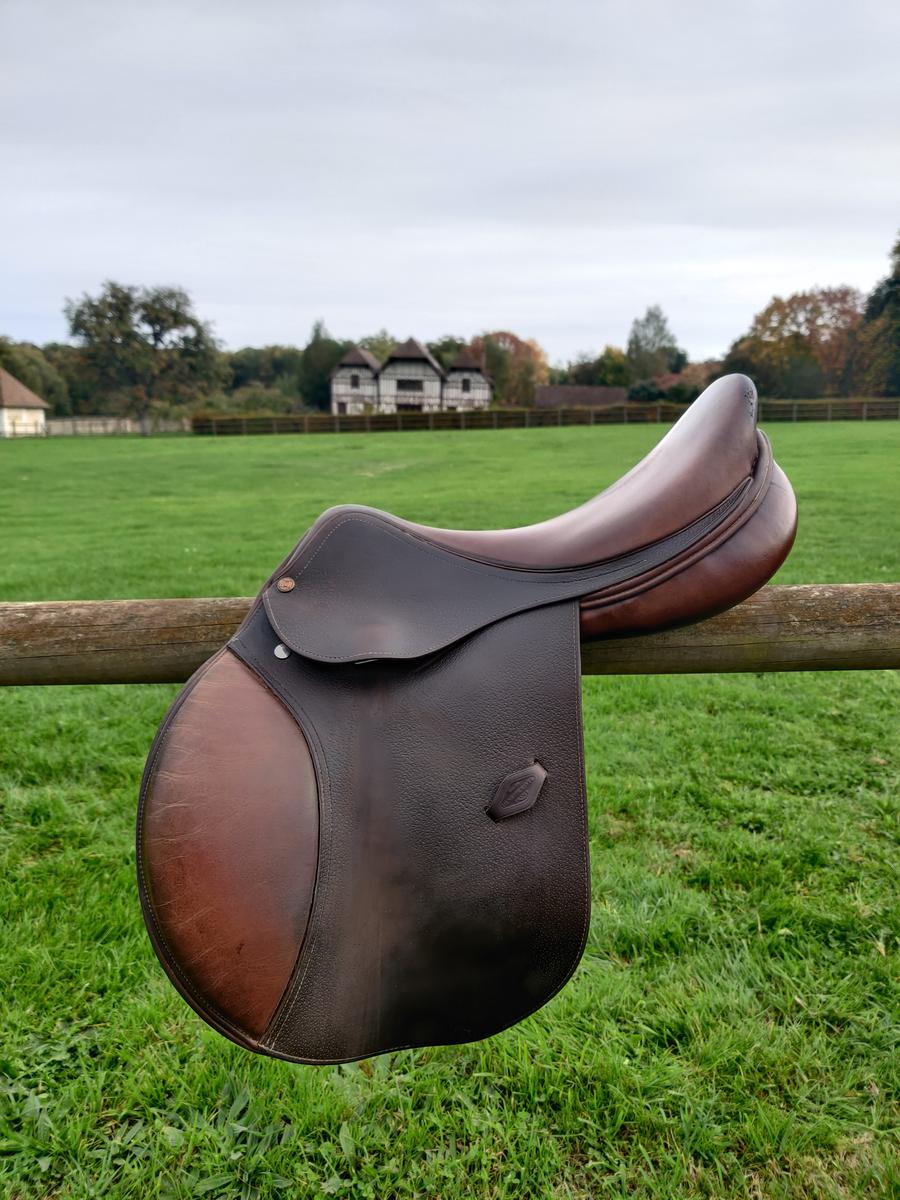 Selle mixte 17 pouce toujours bien entretenu un accro a l'arrière mais ne bouge pas je l'ai acheté comme ça. Confortable, le cuir ne bouge pas et s'entretient très bien .