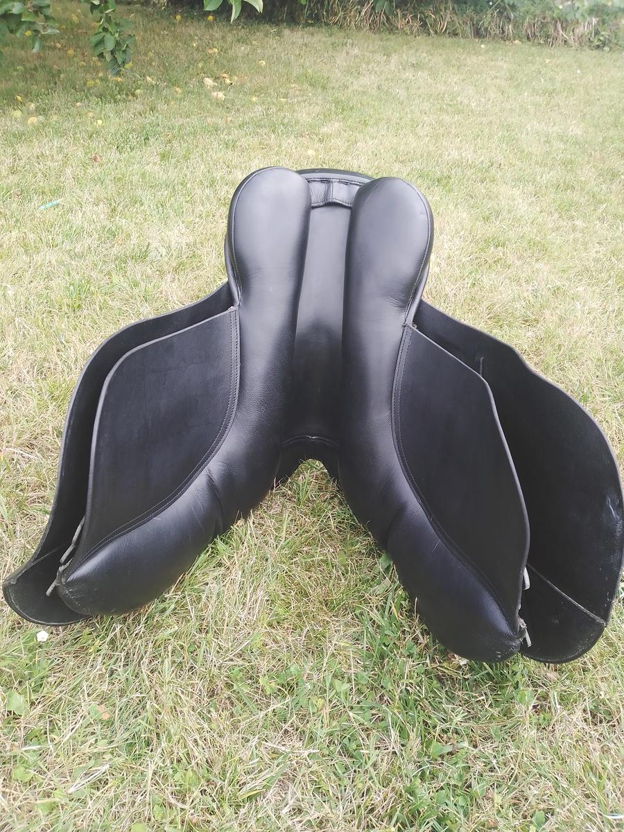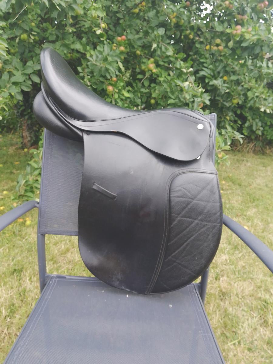 Selle mixte cuir, bananes avant simples qui soutien efficacement. A vendre nue ou équipée d'étrivières, d'étriers classiques, d'une housse et d'une sangle horze dallas 130 cm. Légèrement négociable si départ rapide.