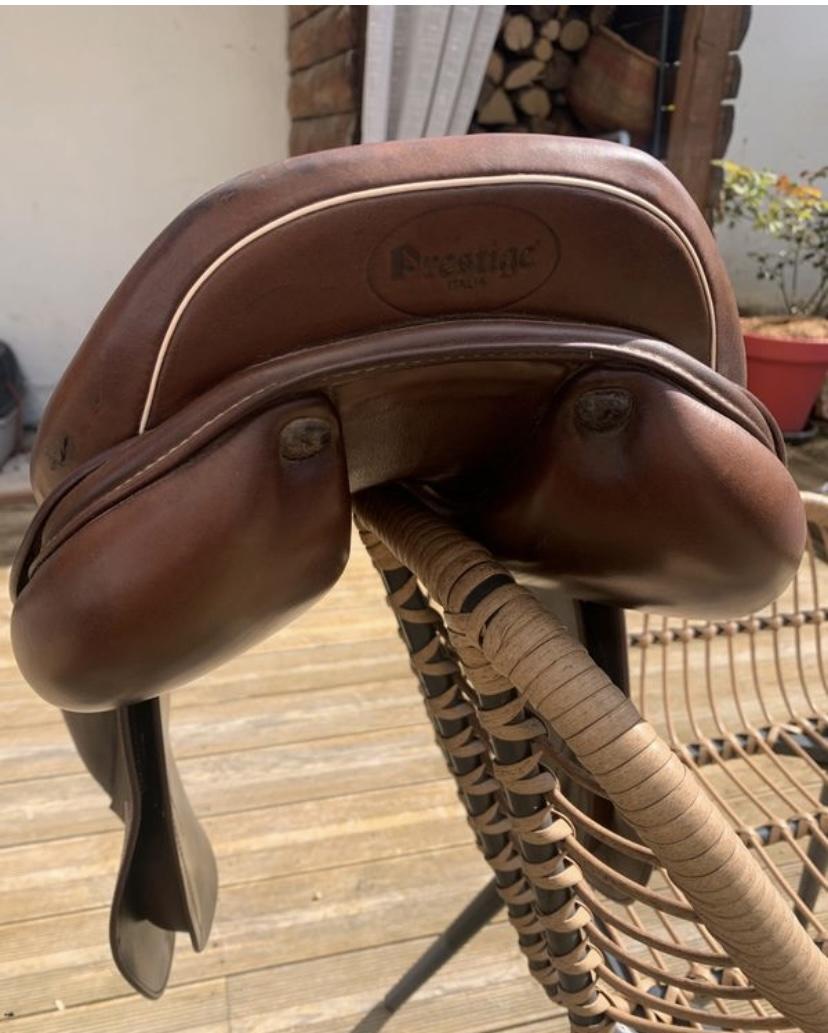 Je vends ma selle prestige modèle Versailles datant de 2012, elle est en très bon état et bien entretenue, elle a un petit défaut derrière(voir photo).