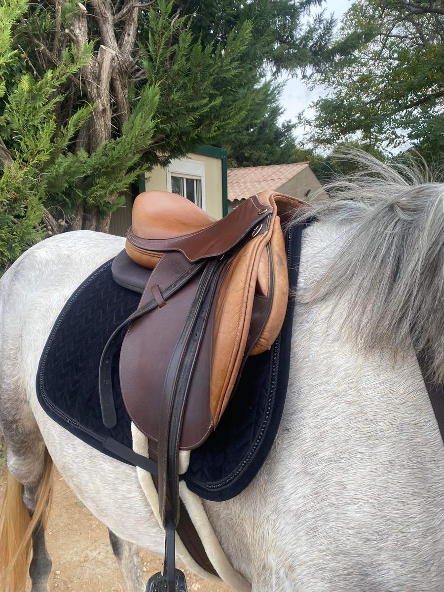 Selle Éric Thomas, 17.5, vendue nu avec housse de selle, arcade non interchangeable