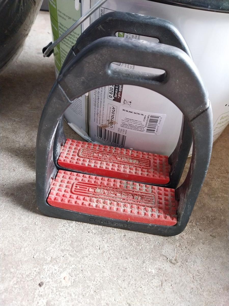 Avec étrivières, étriers compositi, sangle élastique.