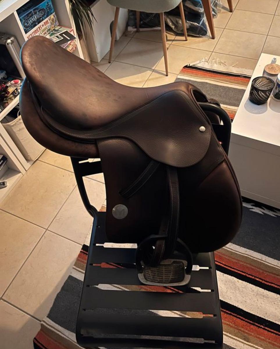 À vendre selle mixte demi creuse Meyer. Couleur tabac, en bon état à part taches et quelques rayures. Taille: 17’5
