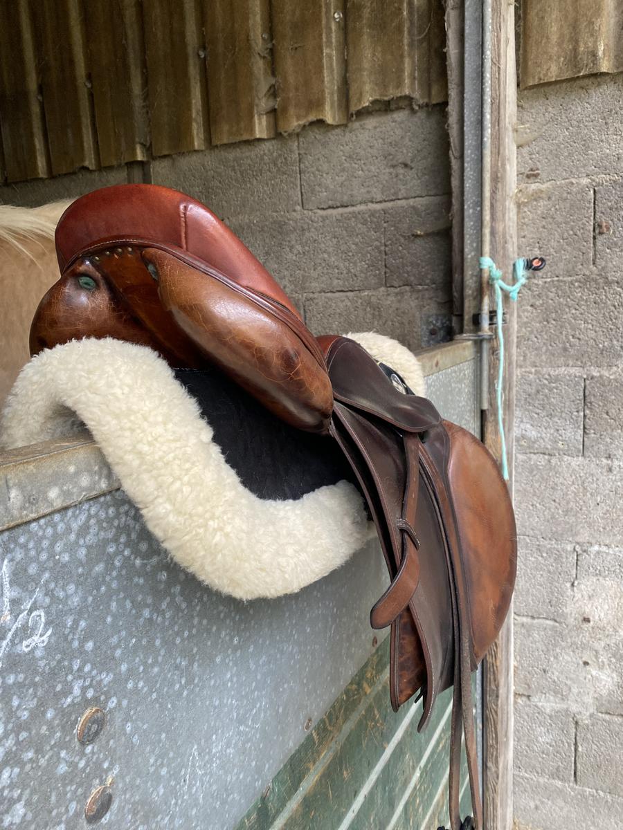 Je vends ma selle Devoucoux en 17,5, qui ne convient plus à ma jument pour pouvoir lui en racheter une plus adaptée à sa morphologie.
