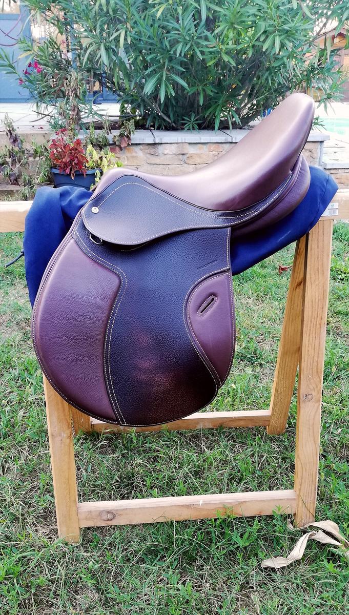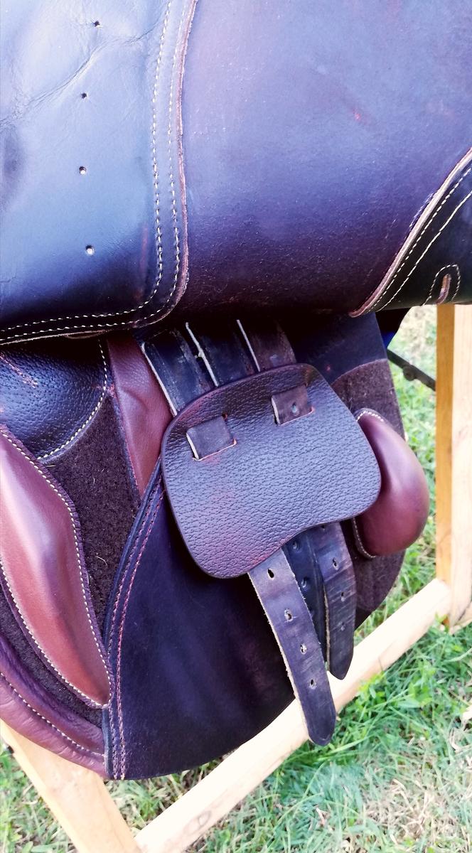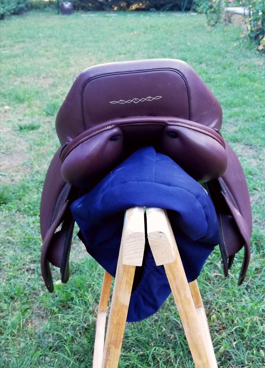Acheté il y a 2 an mais peu utilisée donc en très bon état (1 rayure sur le pommeau). Vendue avec le kit arcades interchangeables plus le couvre selle de la marque et une sangle en cuir marron 130 cm.