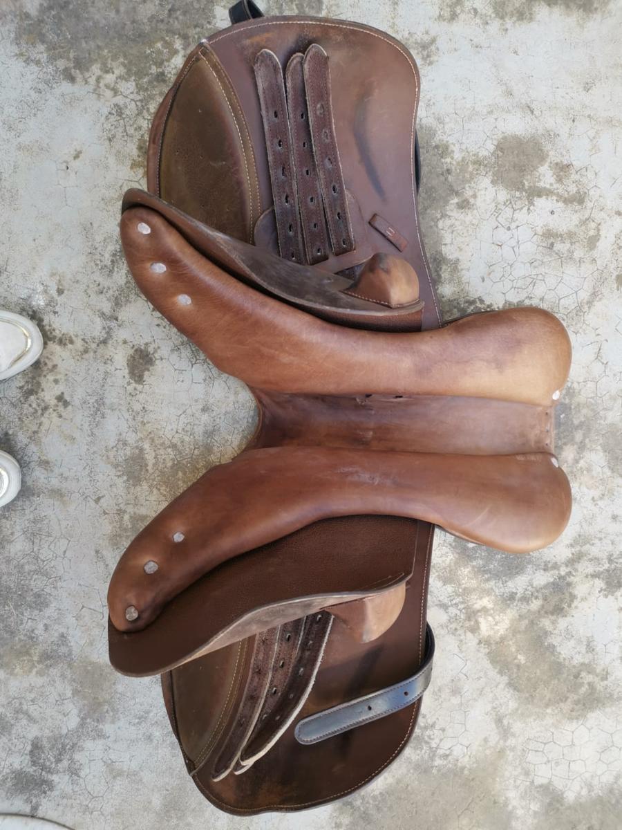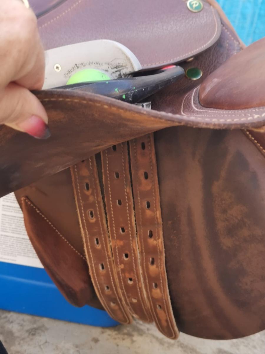 Quelques traces d’usures au niveau des étrivières et un accro en dessous de la selle (ne gêne en rien pour l’usage et le confort).