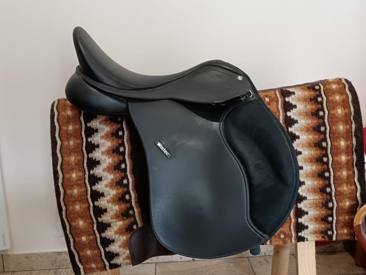 Vends selle Wintec 500 mixte cair en très bon état, avec sa housse d'origine : aucun coup et coutures impeccables.