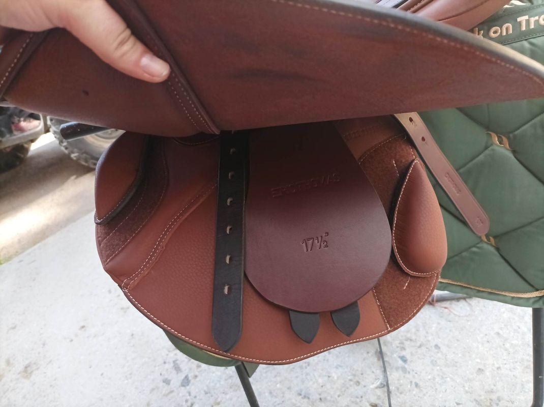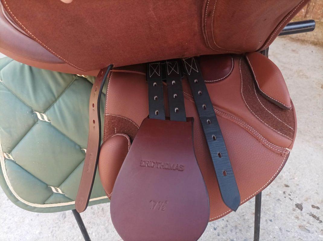 Vend selle Eric Thomas New hybrid jump : selle mixte orienté CSO. Arcade interchangeable, actuellement avec une arcade taille medium.