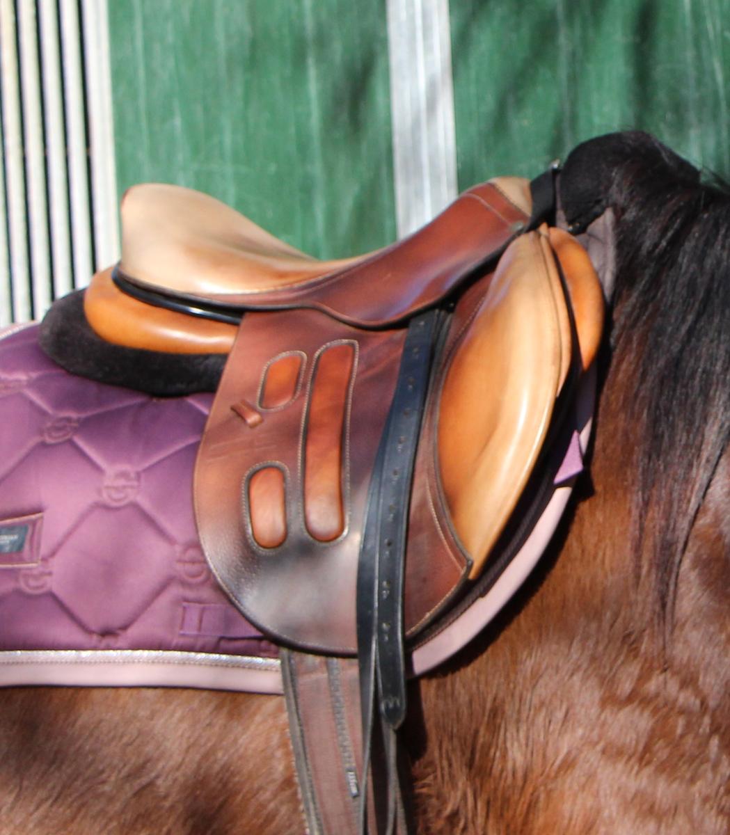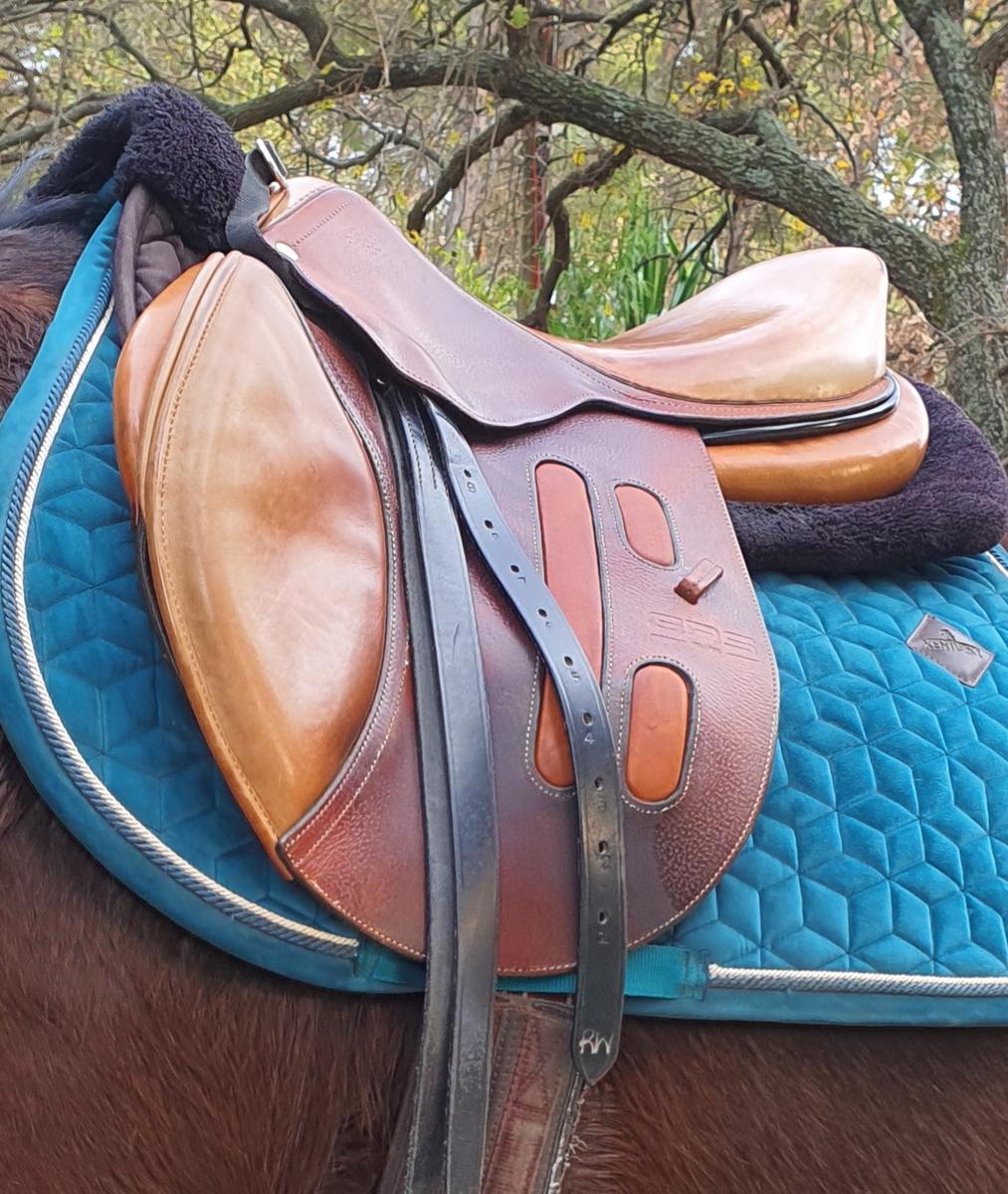 Selle GBS de 2017 ayant été entièrement rénovée par le sellier Devaucoux en 2023.