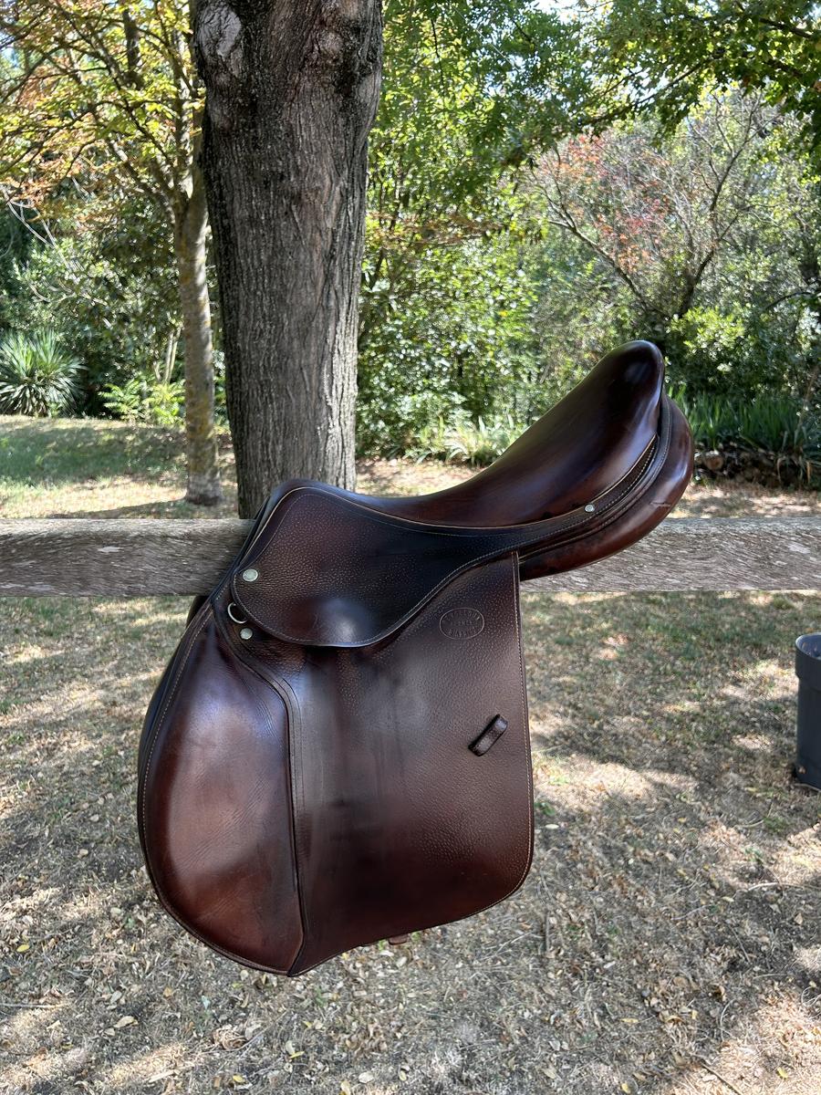À Vendre : Selle d'équitation Devoucoux Modèle Biarritz Taille 17,5 Je vends une selle d'équitation Devoucoux, modèle Biarritz, taille 17,5. Bien que cette selle soit assez ancienne, elle est en bon état et totalement fonctionnelle. Elle ne dispose d’aucun défaut mis à part l’usure normal ainsi qu’une griffure présente sur le derrière de la selle qui ne gêne absolument pas. Elle est passé au contrôle et la griffure est bénigne, elle ne va pas s’étendre. Elle a environ 10 ans mais a été utilisé seulement 1 à 2 fois par semaine ces 4 dernières années. Auparavant elle ne servait que occasionnellement. Caractéristiques : Marque : Devoucoux Modèle : Biarritz Taille : 17,5 pouces État : bon état, bien entretenue Description : Cette selle offre un bon confort pour le cavalier et le cheval. Devoucoux est une marque reconnue dans le monde de l'équitation pour la qualité de ses selles ainsi que ces matériaux. Avantages : Matériaux : Cuir, matériaux de qualité, durables dans le temps. Confort : Offre un soutien adéquat pour les séances d'équitation. Prix : 680€ Pour plus d'informations ou pour organiser une visite, veuillez me contacter par message privé. Cette selle Devoucoux Biarritz est une bonne option pour ceux qui cherchent une selle de qualité à un prix raisonnable. Possibilité d’avoir des étrivières marron ainsi que des étrier noir compositi en très bon état.
