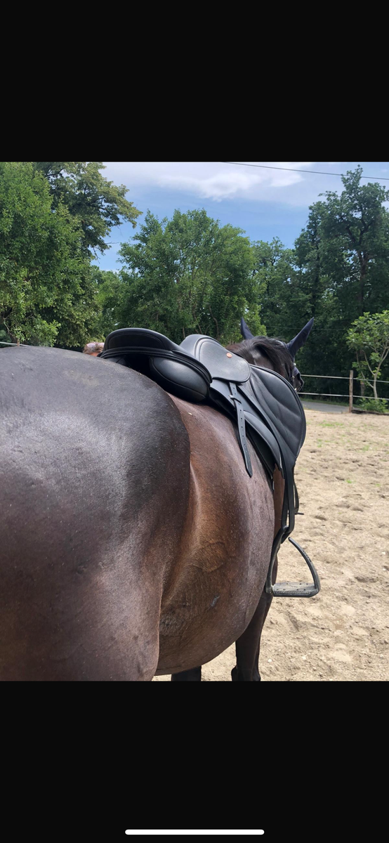Parfaite comme première selle car facile d’entretien grasse à son cuire hybride, ne craint pas les intempéries mais garde le confort du cuire.