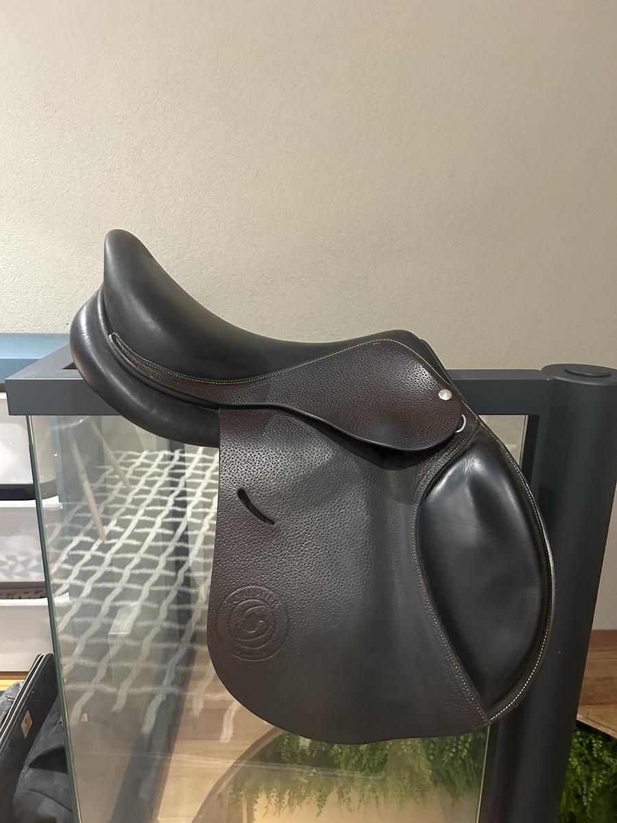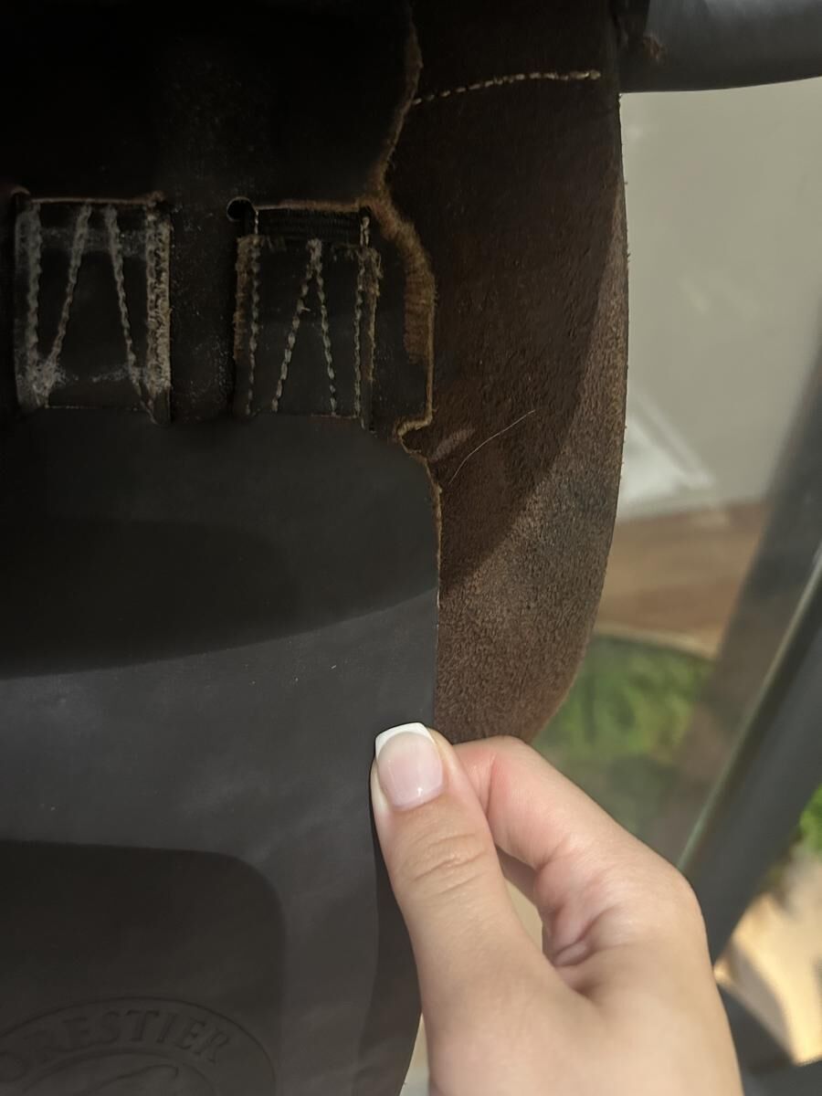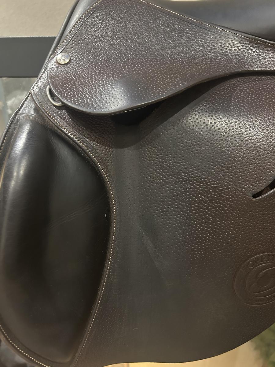 Je vends ma selle forestier Prem’s Junior couleur havane, elle est en très bon état mise à part les taches sur le siège et le cuir au dessus des sanglons (à voir sur les photos),