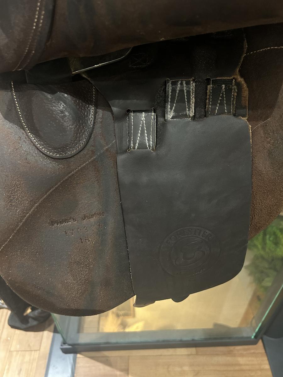 Je vends ma selle forestier Prem’s Junior couleur havane, elle est en très bon état mise à part les taches sur le siège et le cuir au dessus des sanglons (à voir sur les photos),