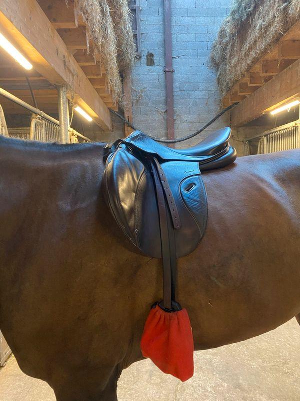 Je la vends avec une sangle 125cm, étriers, étrivières, et housse de protection