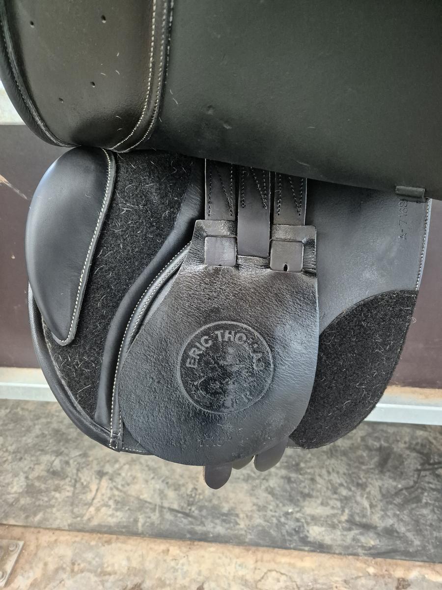 Vends selle Eric Thomas Fitter 17"5 noire avec arcade interchangeable et siège creux, en très bon état. Peu Servie (1 fois par semaine pendant 1 an)