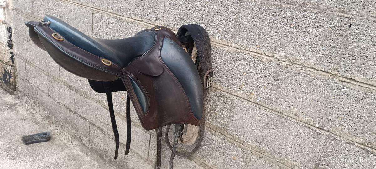 Je propose une selle Gaston Mercier, modèle Compiègne, siège 17.5 semi creux, ouverture 24 en U