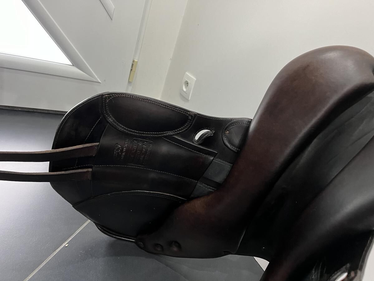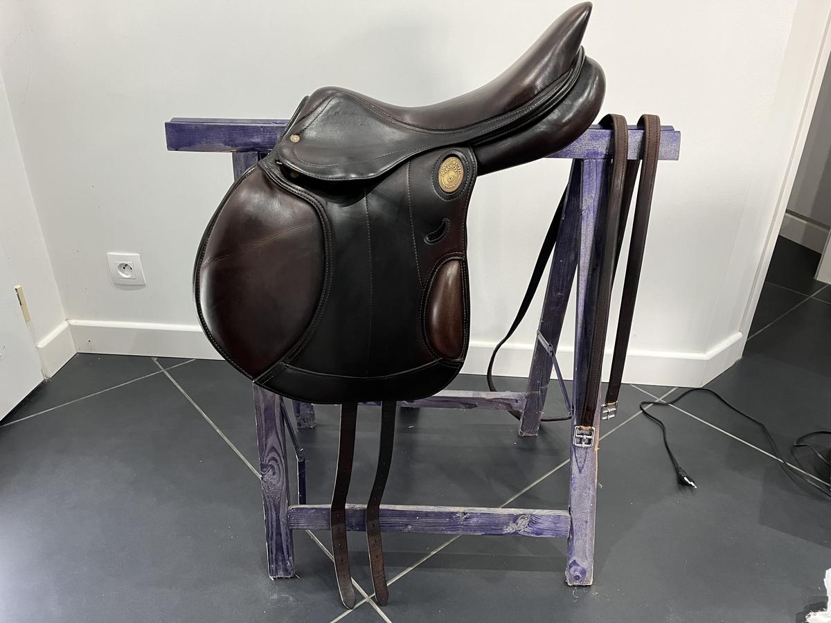 Selle Jean Luc Maurel de 2018, 17.5, équipée de ses étrivières Maurel aussi. C'est le modèle Pro'Gress, selle mixte par excellence, la Pro'Gress est pourvue d'un siège semi-creux permettant la pratique de toutes les disciplines. Elle est en bon état, toujours entretenue avec les produits Maurel que je donnerai lors de la vente.