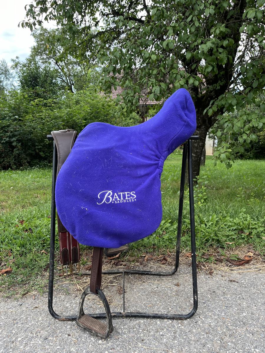 C'est une Bates marron mixte (marque Australienne), 1ère main achetée il y a 3 ans, taille 17'' avec actuellement l'arcade blanche (qui est interchangeable) et troussequin carré offrant au cheval une liberté de mouvement optimale et un siège close contact très bien équilibré.