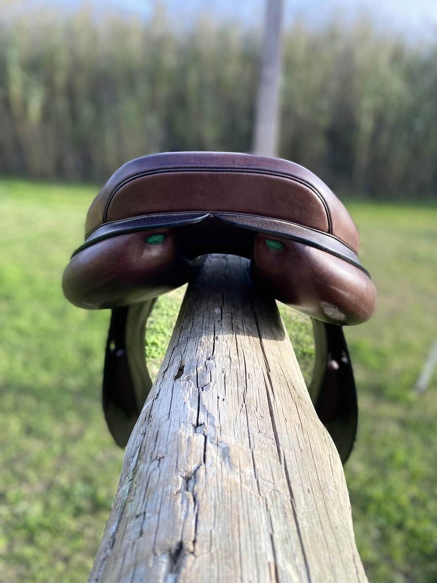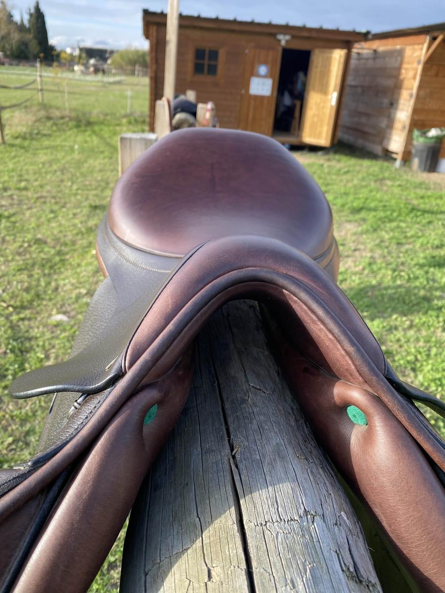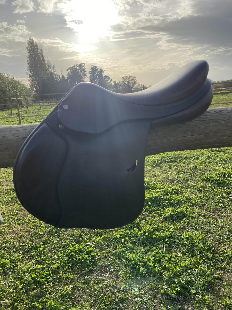 vends selle couleur marron,taille 16” marque :Équipe modèle:emporio jumping arcades interchangeables ,actuelles:22 Bon état juste quelques traces d’usures mais rien de méchant.D’autres photos possibles sur demande.