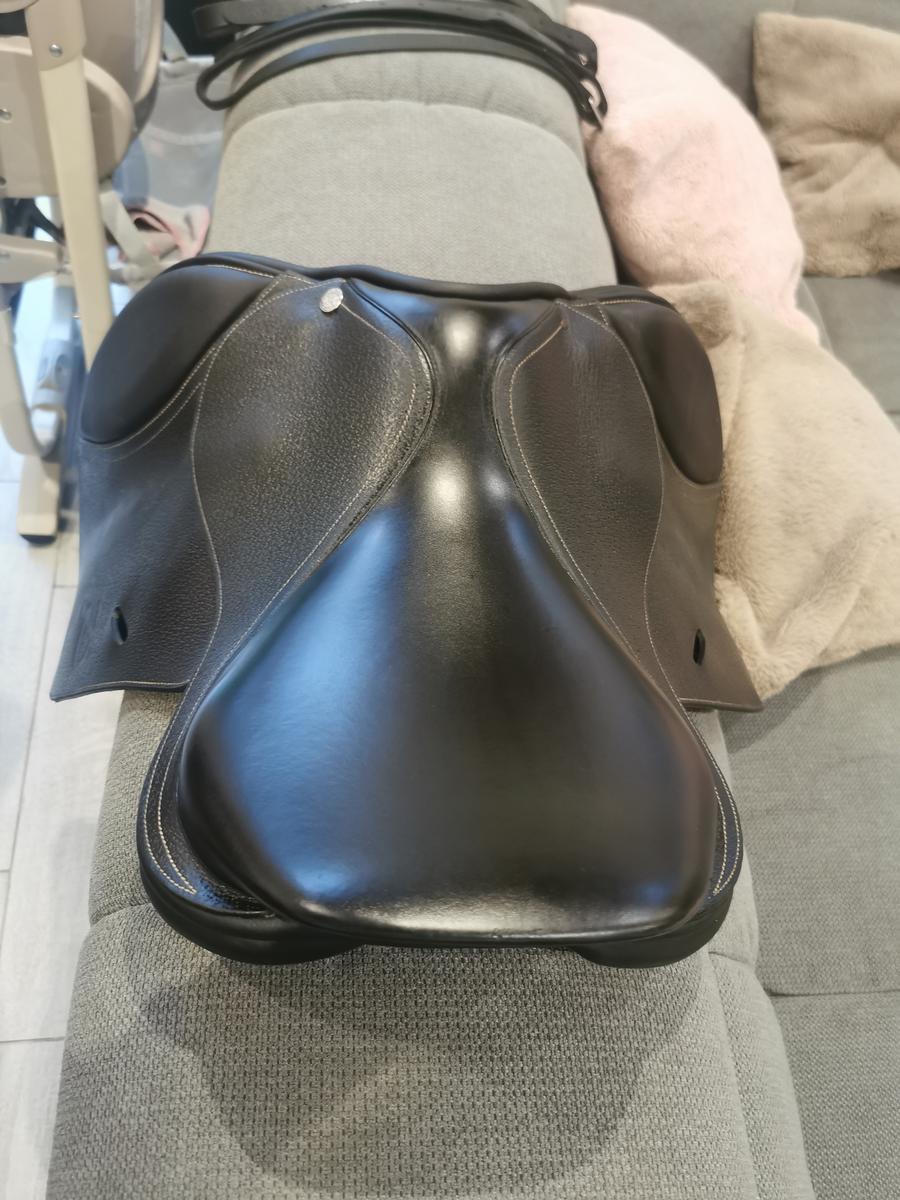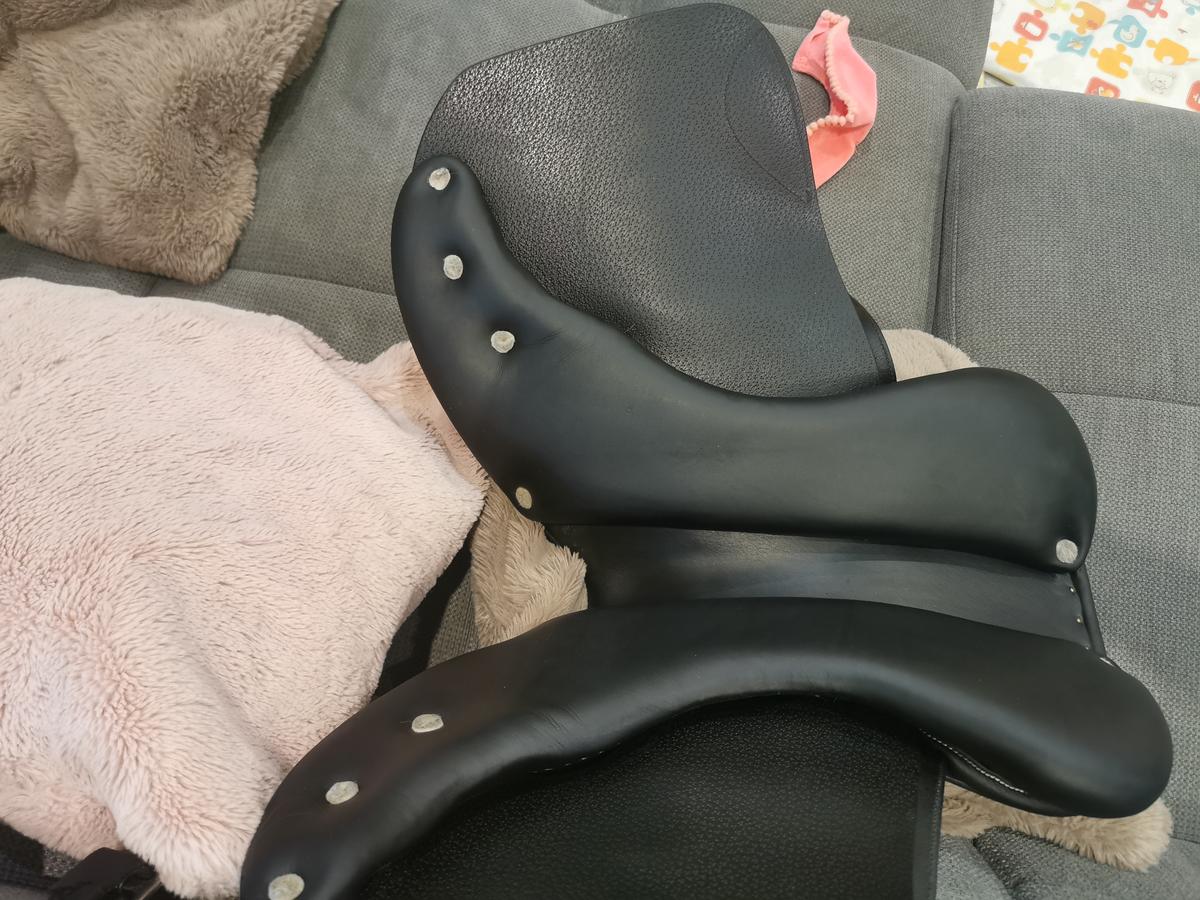 Selle noire mixte de la marque Privilège en excellent état. Elle allait aussi bien au poney B que D