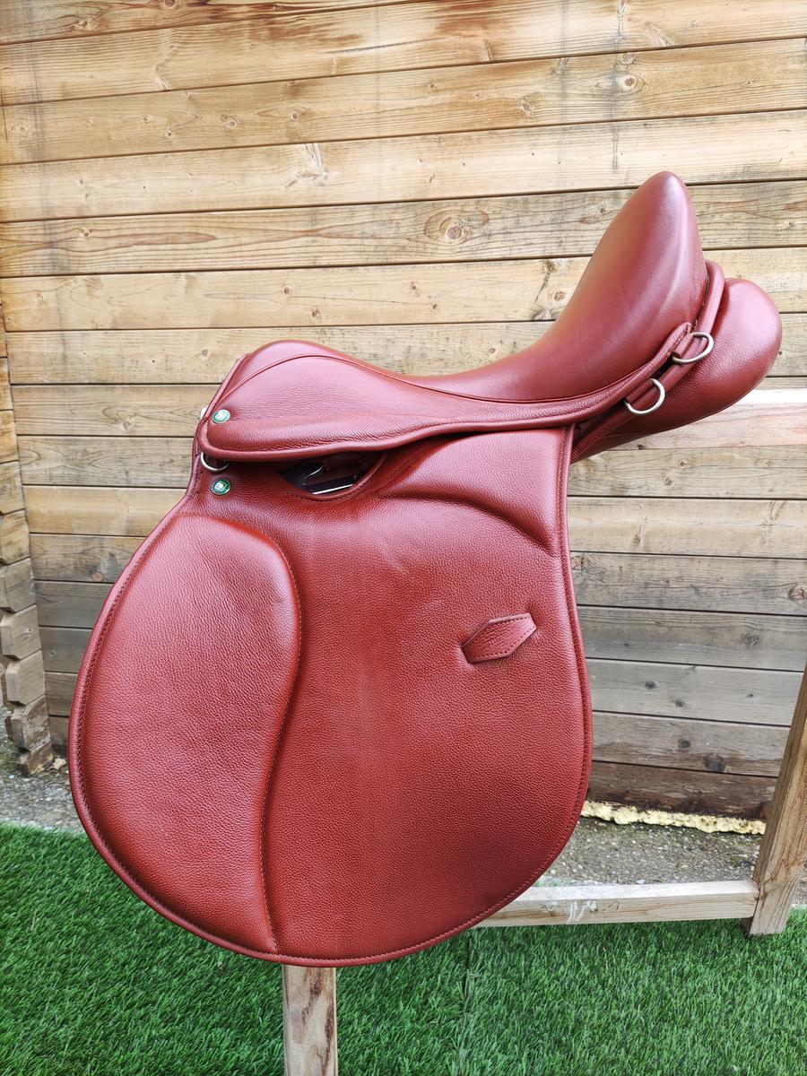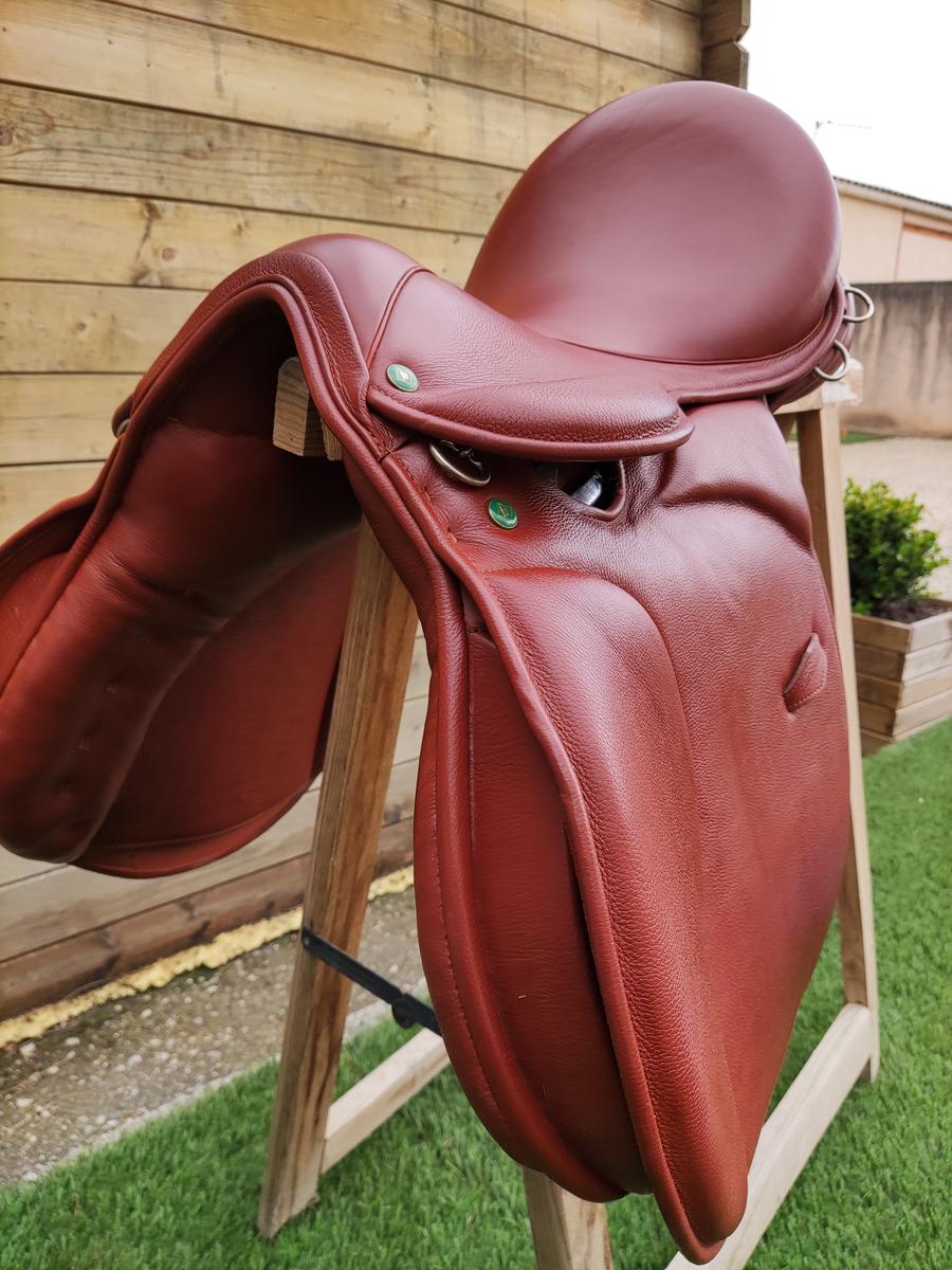 Vendue équipée avec sangle cuir de 125 cm élastiquée, étrivières cuir et étriers