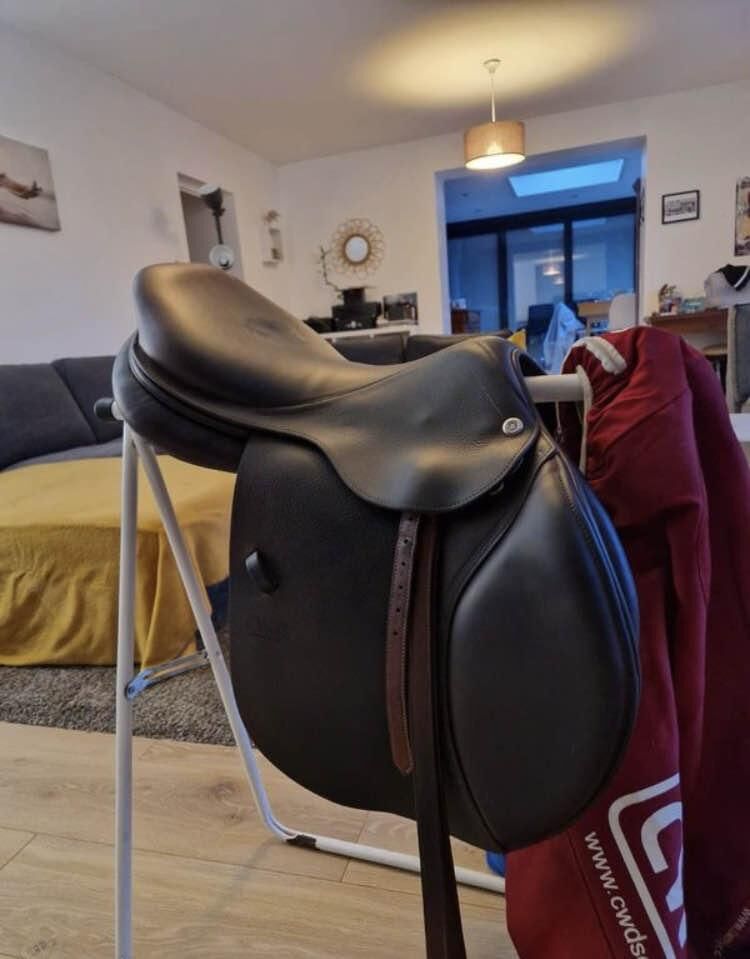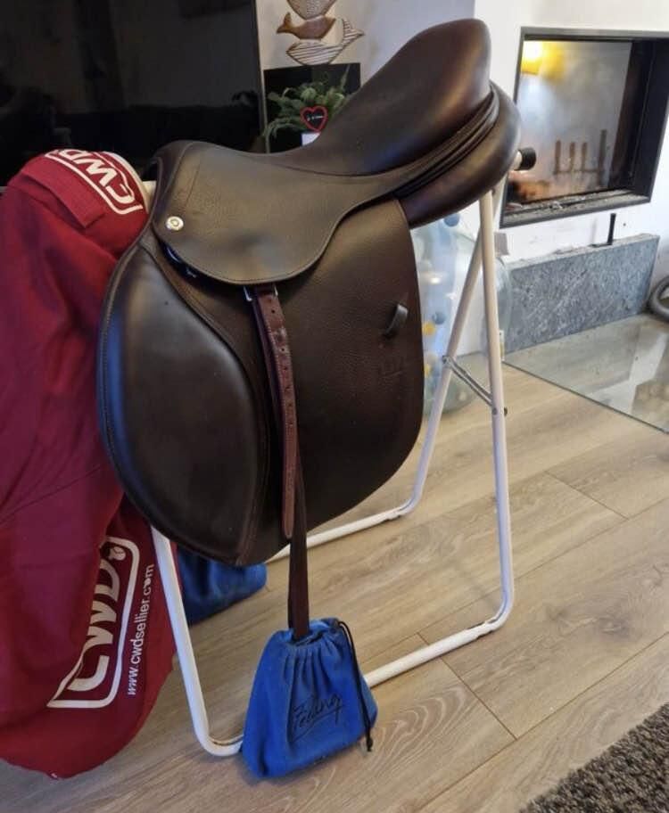 Selle mixte CWD bon état avec étrivières et étriers FlexOn. Possibilité d’essayer sur place ou proche de l’écurie. Plus d’informations ou photos possibles par sms.