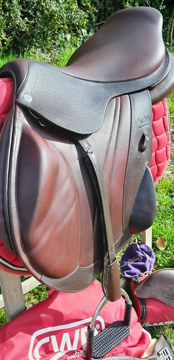Très belle selle mono quartier de chez CWD équipée modèle Élégance SE 09 Taille 17,5. Mais convient aussi à une taille 17. Quartiers 3A. Très peu utilisée. Excellent état. Très beau cuir. Confortable.