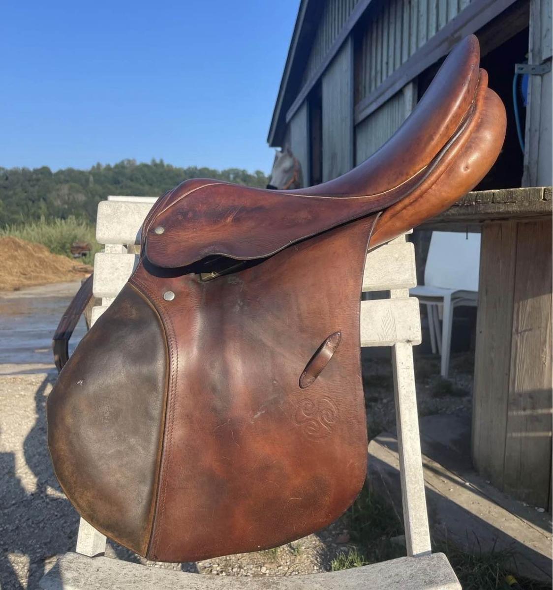 selle stuben 17,5, 100% cuir en bon état, quelques traces d’usures mais rien de bien méchant, vendue avec une sangle cuir 135 cm élastique d’un côté en bon état, étrivières cuirs un peu usées mais non craquelées et anciens étriers. Ne convient plus à mes chevaux. Départ rapide souhaité ⚠️
