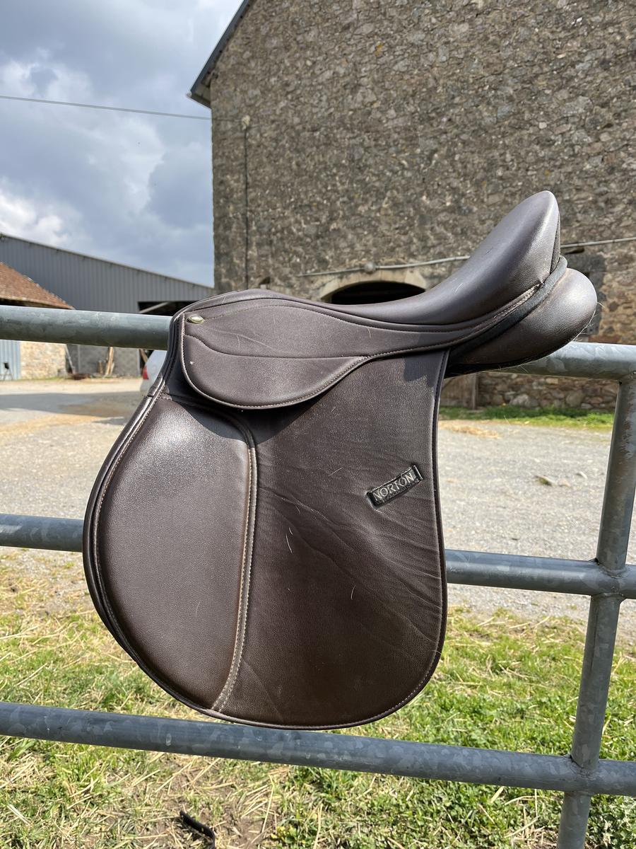 Je vends ma selle mixte Rexine Norton en cuir synthétique marron.