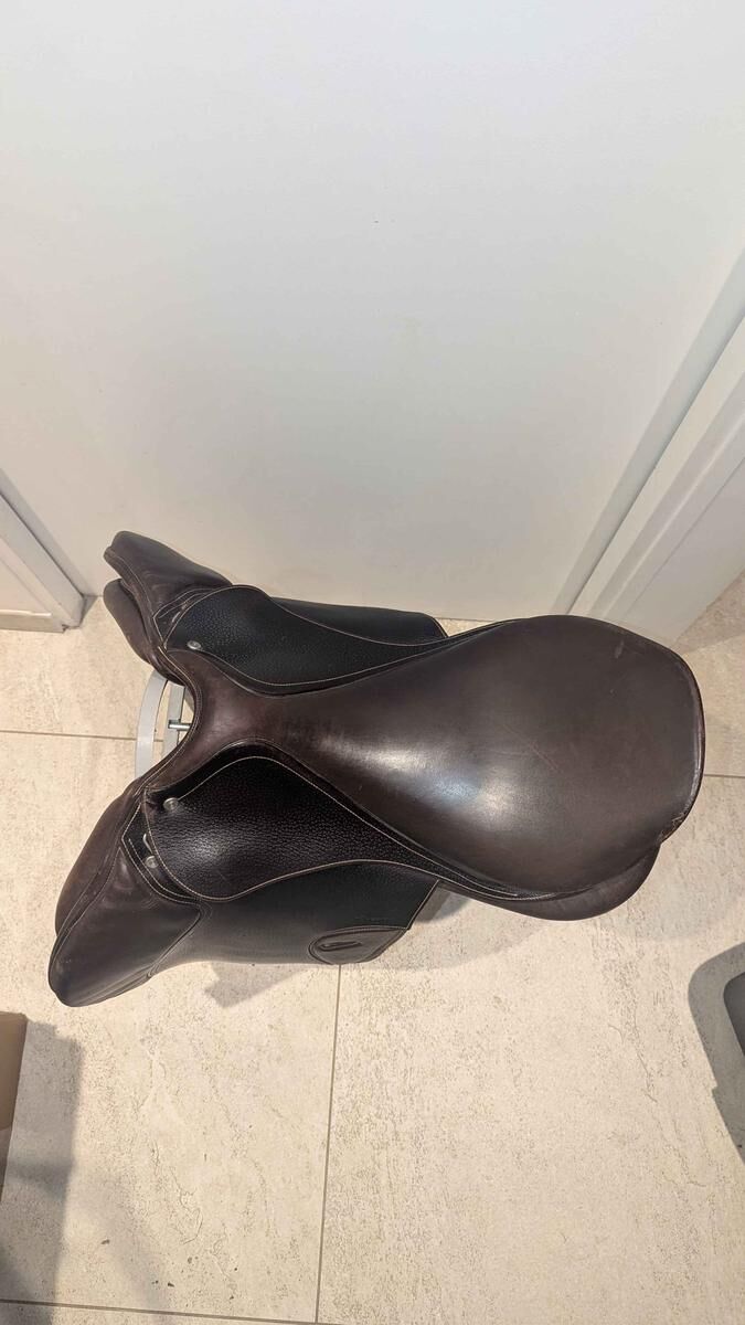 selle decathlon havane taille 17'5 en plutôt bon état ( a été mordillée sur le troussequin) selle confortable pour du loisir ou comme première selle
