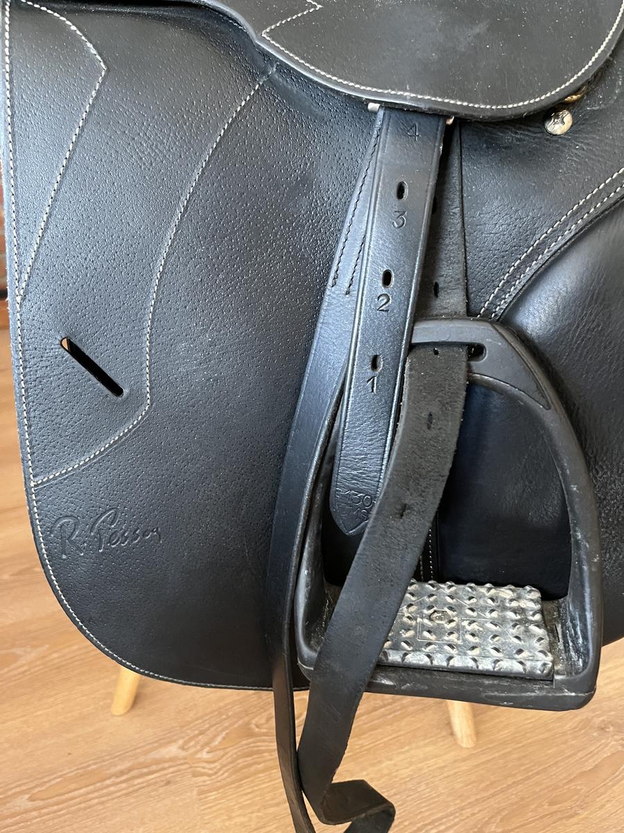 Selle en super état utilisé tres rarement pour cause d'arrêt du sport, un bon passage à l’huile et elle brillera, vendu avec étrivières ( marque inconnu )et étriers ( compositi), ainsi que vendu avec la housse de protection