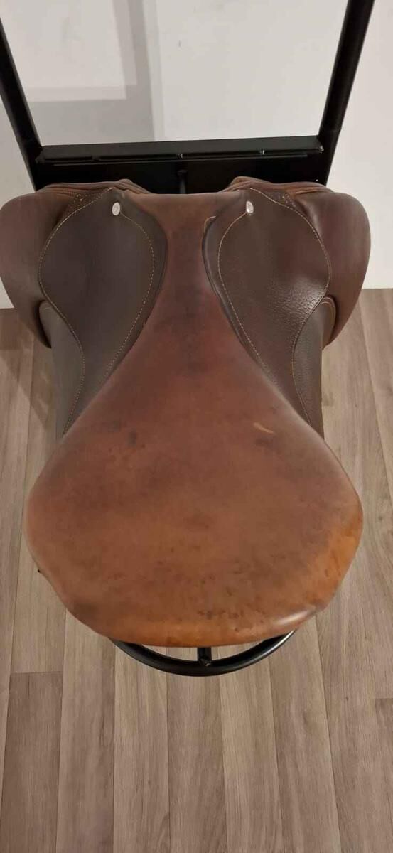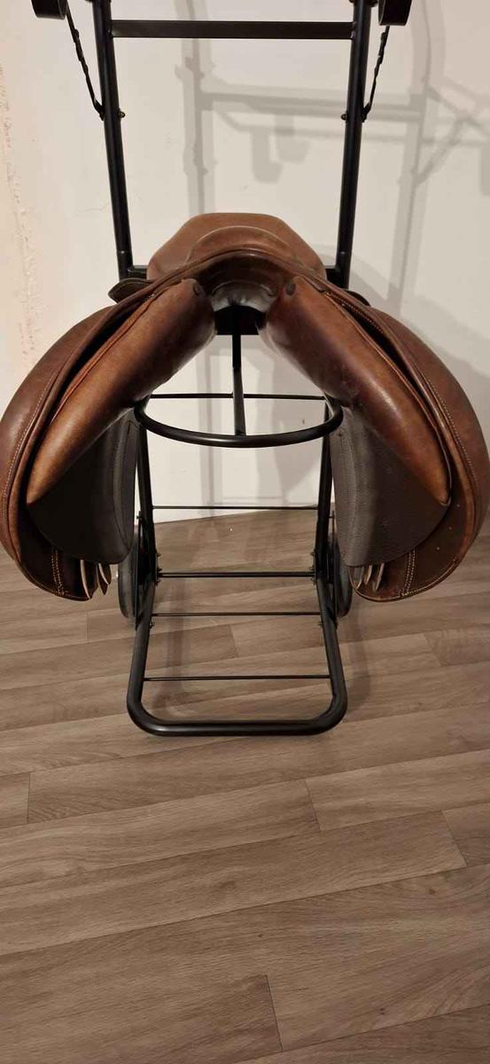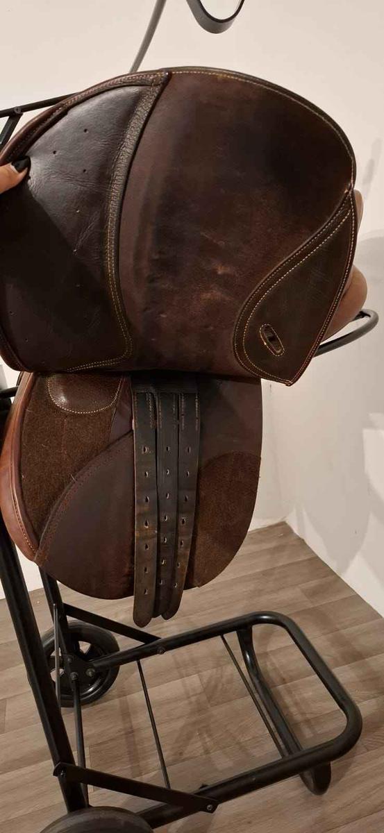 Je vends une selle en cuir Fouganza 17,5" pour cheval, en bon état. Elle a toujours été entretenue avec soin à l’aide de produits nettoyants et nourrissants pour cuir, et elle est vendue dans sa housse de protection pour garantir sa longévité.
