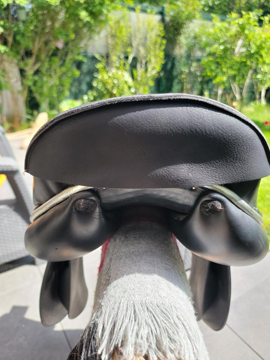 Je m'en sépare à contrecœur, elle taillait bien sur les chevaux que je montais auparavant mais elle est malheureusement trop étroite pour le dos large de ma jument que je remets au travail