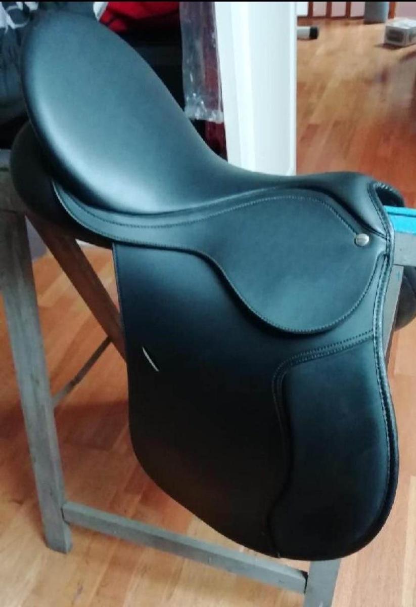 selle quasiment neuf très peu utilisé siège en taille 17,05 pouces contre sanglant neuf correspond à plusieurs tailles en fonction de l’arcade. Personnellement elle était mise sur une double poney assez fine.