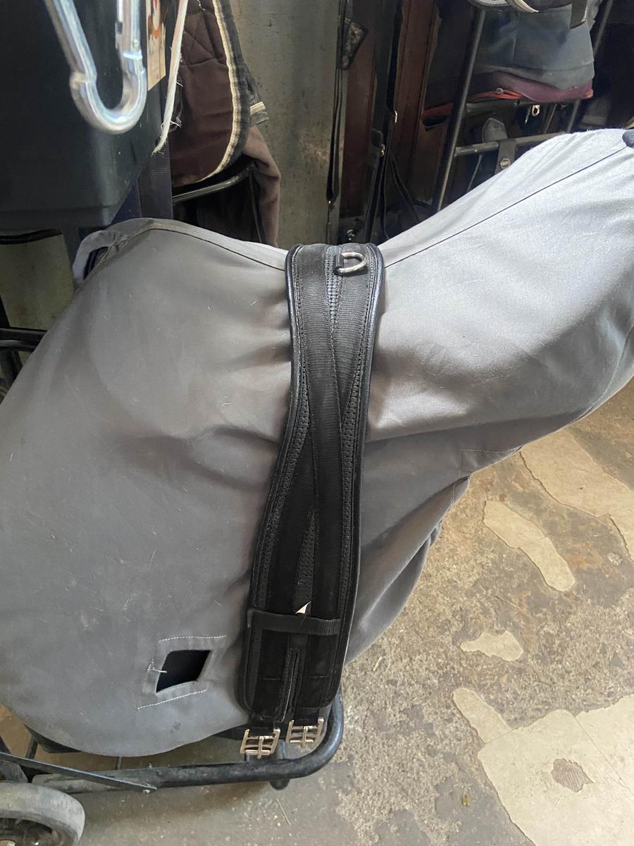Selle mixte en synthétique 18 pouces, donc aucun entretien. Elle est en super état et n’a presque pas était utilisée. Elle est vendu avec une housse de la même marque ainsi qu’une sangle en taille 115cm en synthétique donc aucun entretien à prévoir. Elle est négociable