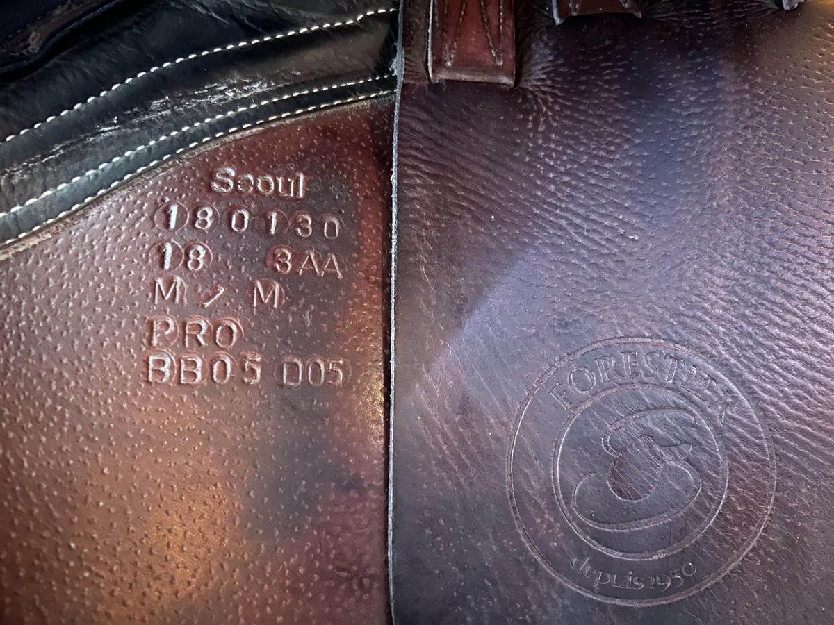 Vends selle Forestier Seoul, mixte, siège 18 pouces, taille des quartiers 3AA. Produite en 2018.