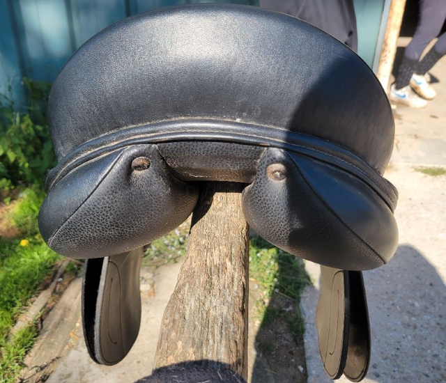 Etat : Très bon état, légère usure des quartiers au niveau du passage de l'étrivière, nettoyer au savon glycériné plusieurs fois par an.