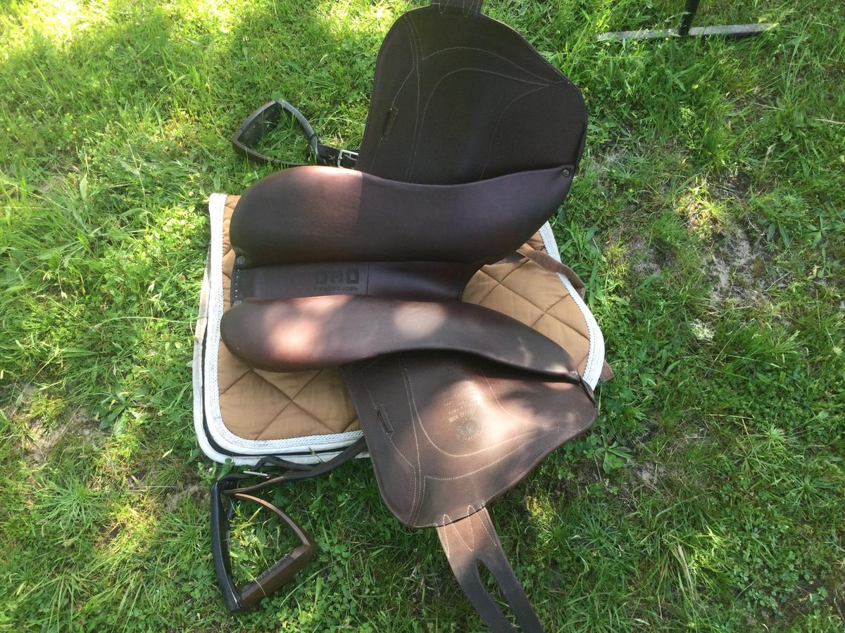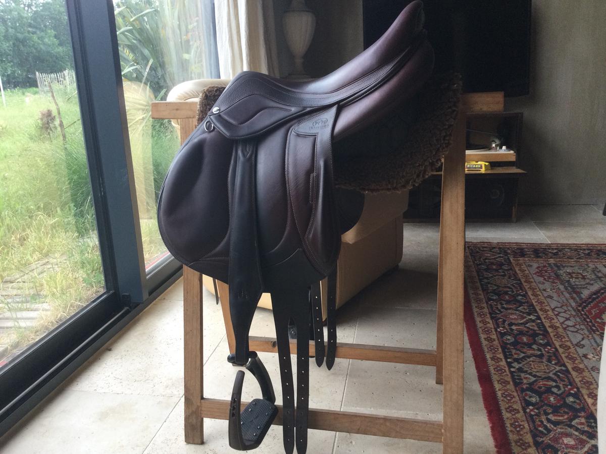 Comme j en achète une noire, je la vends avec une sangle Devoucoux taille 60 , ainsi que les étrivières mono branches taille S de la même marque et les étriers Free