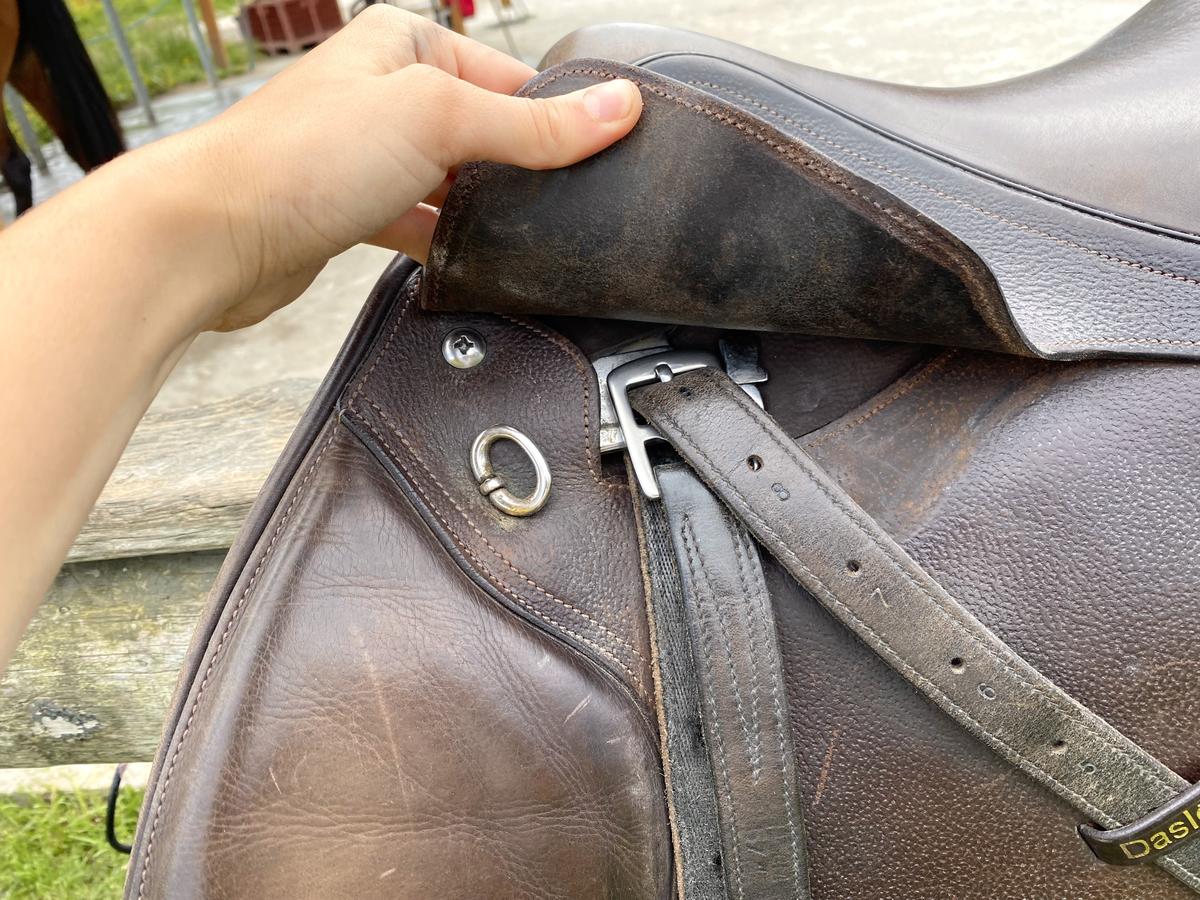 Selle mixte orientée obstacle en cuir Gold Daslö (sous branche de Tattini) en excellent état, peu utilisée car ne va pas à ma jument (dos très particulier)